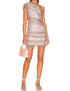Elevate your event style with the Annora Mini Dress by Amanda Uprichard, perfect for any chic occasion from festivals to weddings. This women's bodycon piece features a striking one-shoulder design and a flutter sleeve, enhanced by a flattering ruffle detail on the shoulder and ruching throughout. Crafted from polyester blend with a floral pattern, this 41-inch dress includes a concealed side zipper for a tailored fit. Care advice recommends dry cleaning to maintain its elegant character.