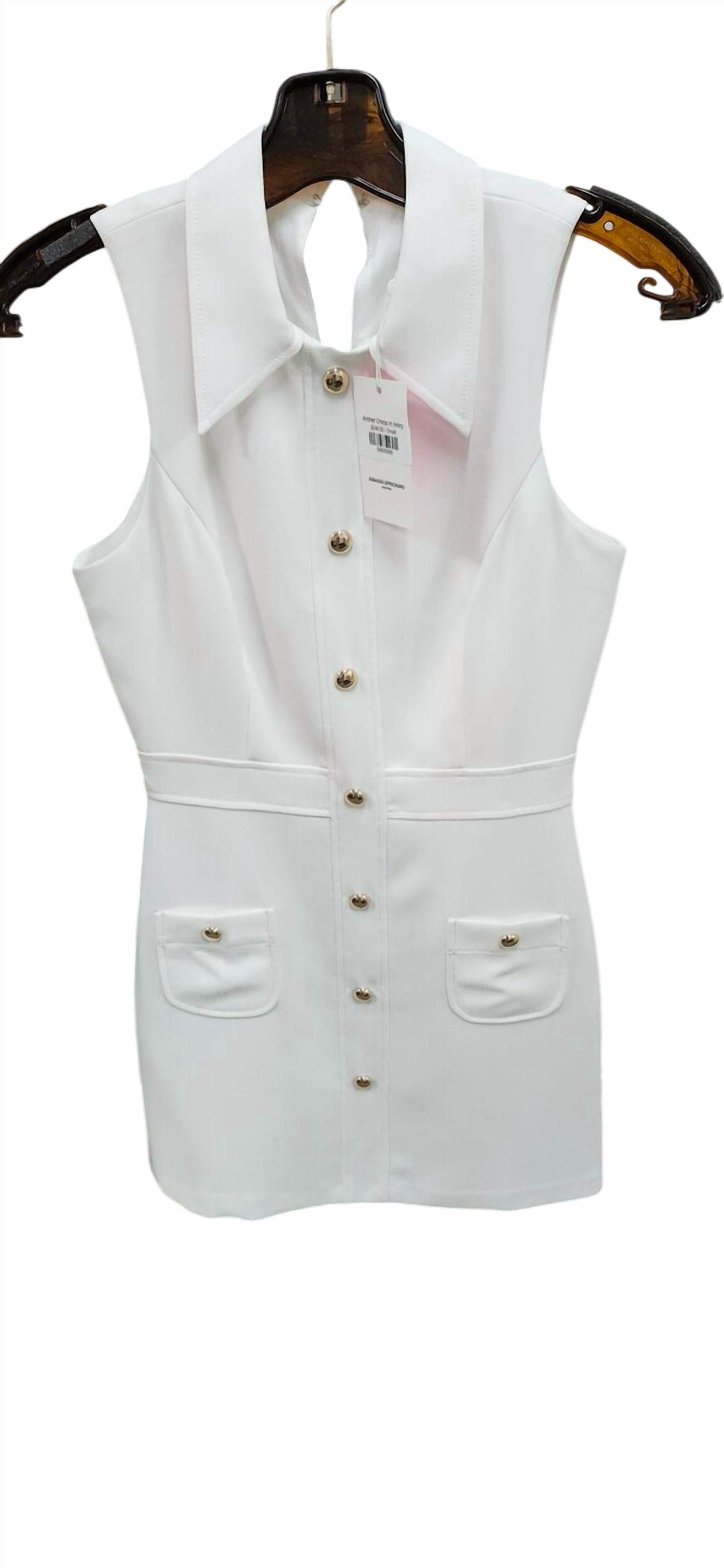 O tipo de vestido fácil e elegante que você vai usar durante toda a estação. Apresentamos o Vestido Archer de Amanda Uprichard, um elegante vestido curto marfim que é uma adição versátil a qualquer guarda-roupa. Com seu corte em A sem mangas, este vestido apresenta gola alta e gola alta, adicionando um toque de sofisticação ao seu design minimalista. Confeccionada em 100% poliéster, esta peça requintada oferece fecho frontal por botões e zíper lateral invisível, garantindo um caimento impecável. É totalmente forrado e vem completo com bolsos falsos e botões dourados chiques e inovadores, exigindo lavagem a seco para manter sua elegância.