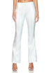 Introducing the Kourt Pants by Amanda Uprichard, a stunning addition to any wardrobe with a unique ice blue hue. These trousers boast a flared leg and are crafted from a blend featuring 39% rayon, 33% nylon, and 28% metallic, with a 100% polyester lining. Made in China, they feature a hidden zip closure for a seamless look. For best care, dry clean only is recommended. Measurements include a 33-inch inseam and a 12-inch rise.