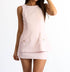 Introducing the Maven Skort Romper from Amanda Uprichard in a stylish Mochi hue, perfect for dinner parties or any spring occasion. This sleeveless romper features a playful mini length and a sophisticated silhouette enhanced by princess seams, a bell shape design, and faux pockets adorned with gold buttons. Crafted from 100% polyester, it offers an invisible back zip closure for an elegant finish. Care instructions are not specified.
