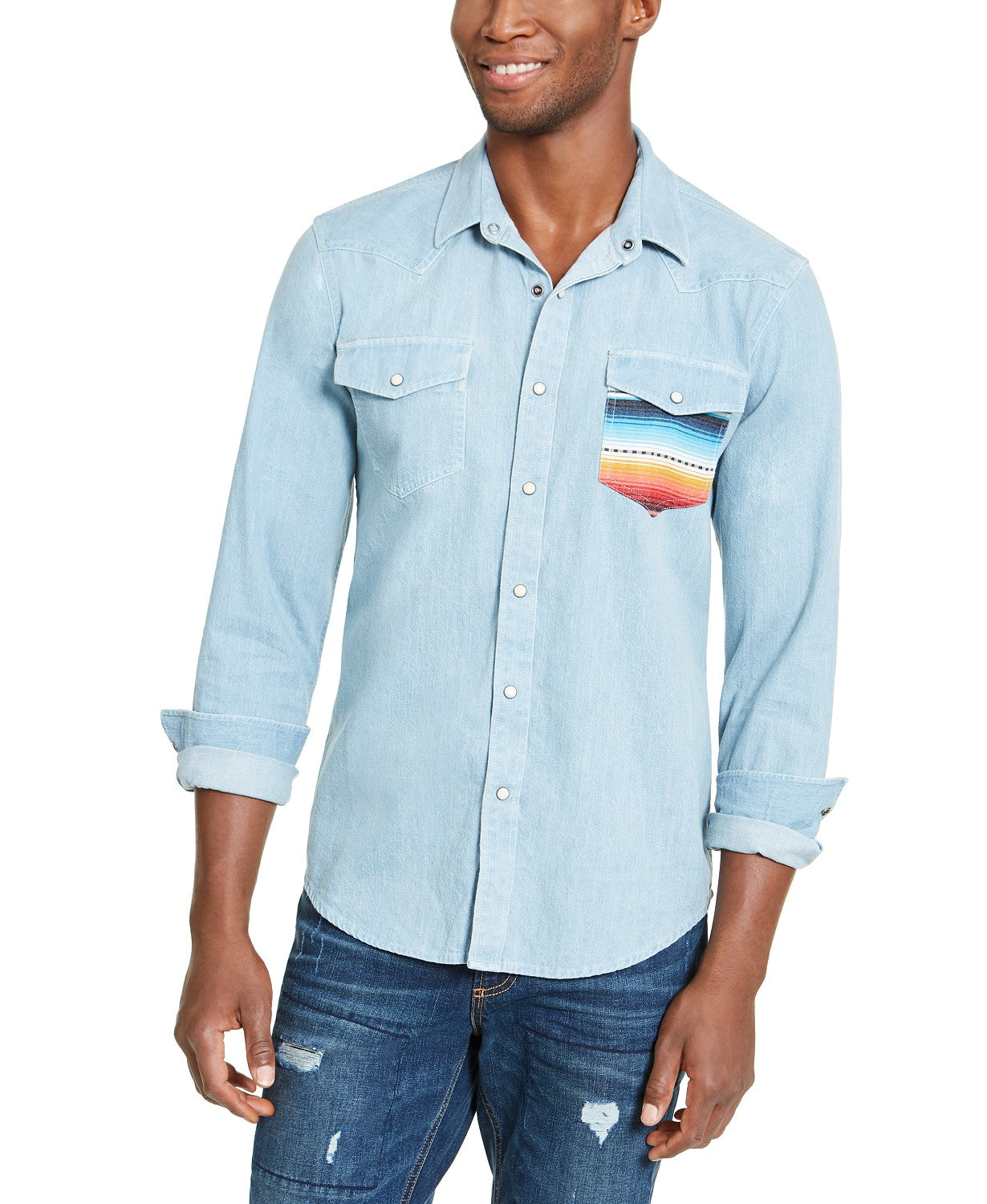 Camisa masculina American Rag Antonio Western azul tamanho XXG