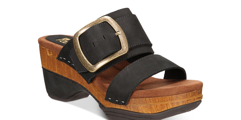 Tiras largas completam o salto plataforma com aparência de madeira nas sapatilhas Montage da White Mountain | completando o visual com fivelas grandes e amortecimento para conforto o dia todo. | Salto plataforma 2-1/2; 1 plataforma | Sandálias plataforma anabela com bico redondo e fivela | Palmilha acolchoada com suporte de arco para maior conforto | Cabedal em couro; forro sintético; sola sintética