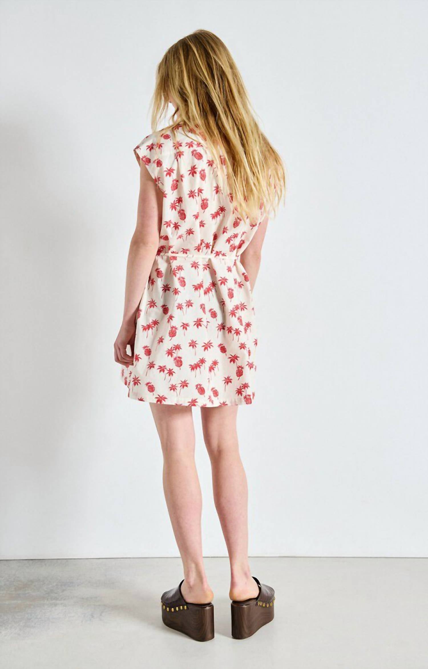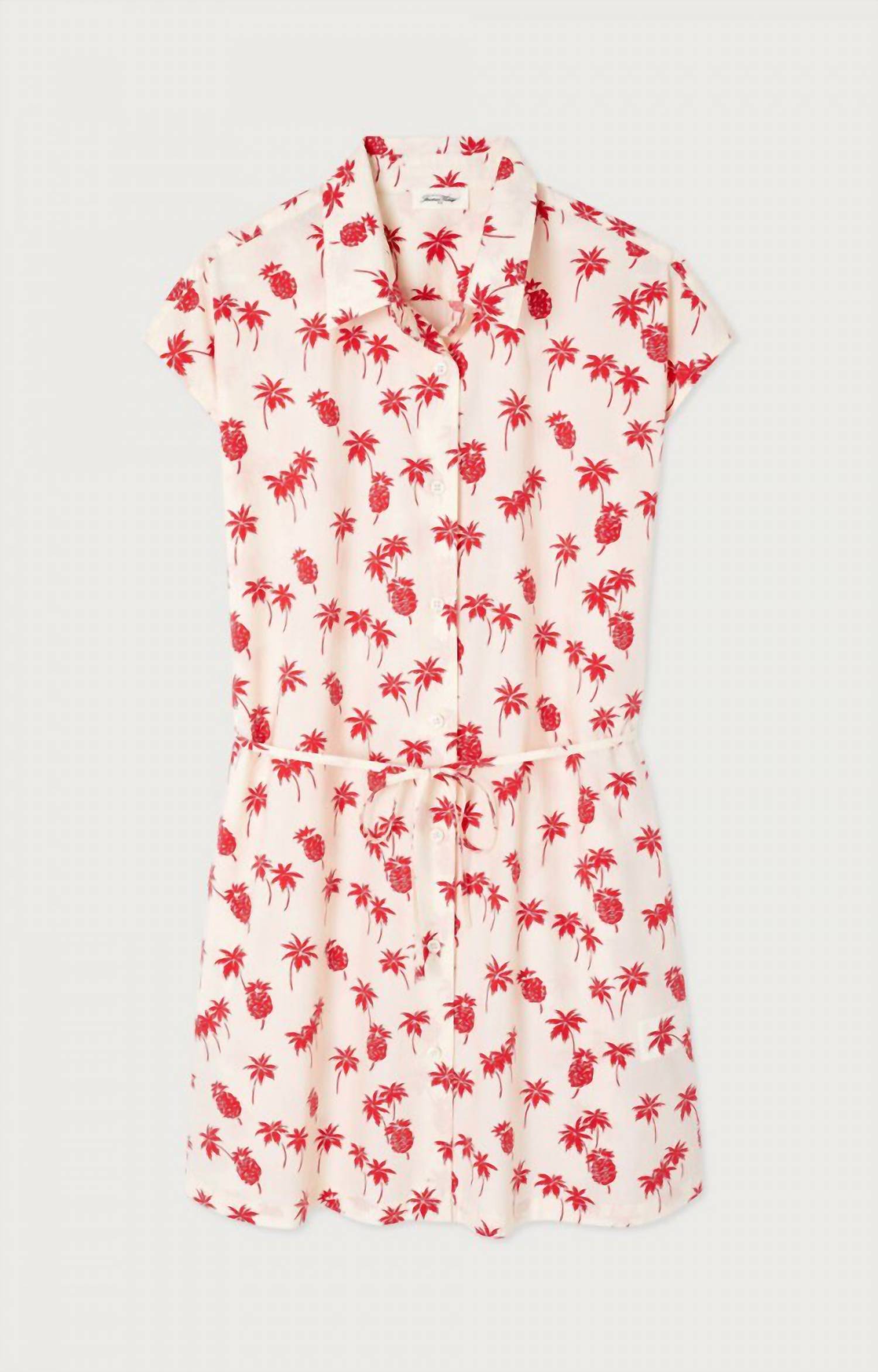 The Bailow Mini Dress by American Vintage is a chic vacation staple in a vibrant Vitamins hue. This A-line silhouette features a shirt collar and short sleeves, crafted from 100% cotton sourced from organic farming. With a solid pattern and button closure, it embraces a monochrome trend effortlessly. Care instructions advise hand washing and line drying to maintain its quality.
