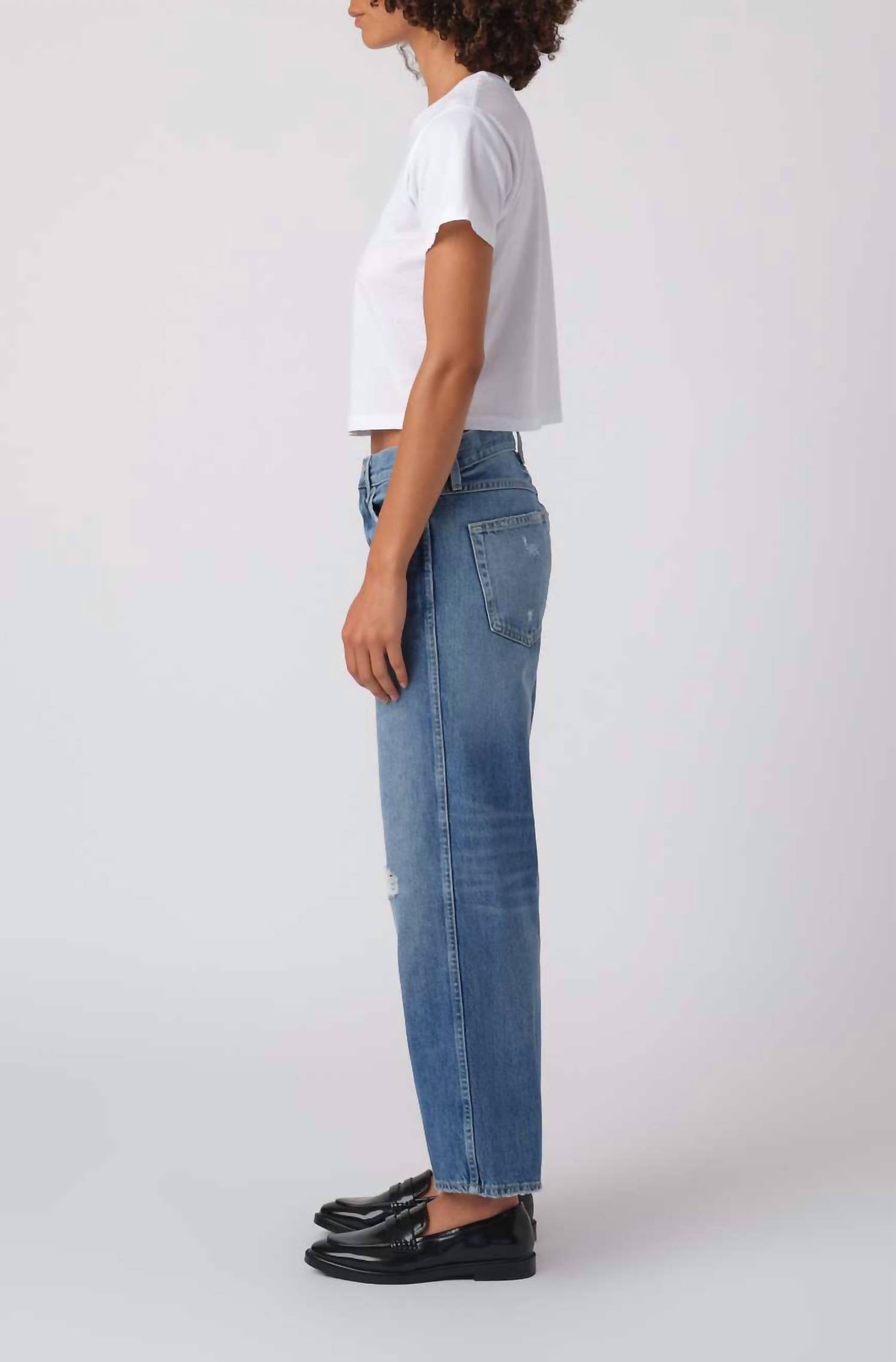 Meet the Billie Jeans by AMO, the perfect blend of style and ease with its relaxed, straight-leg fit in a trendy medium wash. Crafted from 100% Cotton, these jeans sit mid-rise with dimensions that include a front rise of 10.75 inches and inseam of 26.5 inches. Designed in Los Angeles, they feature thoughtful distressing and a button closure for a modern touch. For care, machine wash cold and tumble dry on low heat to maintain their timeless appeal.