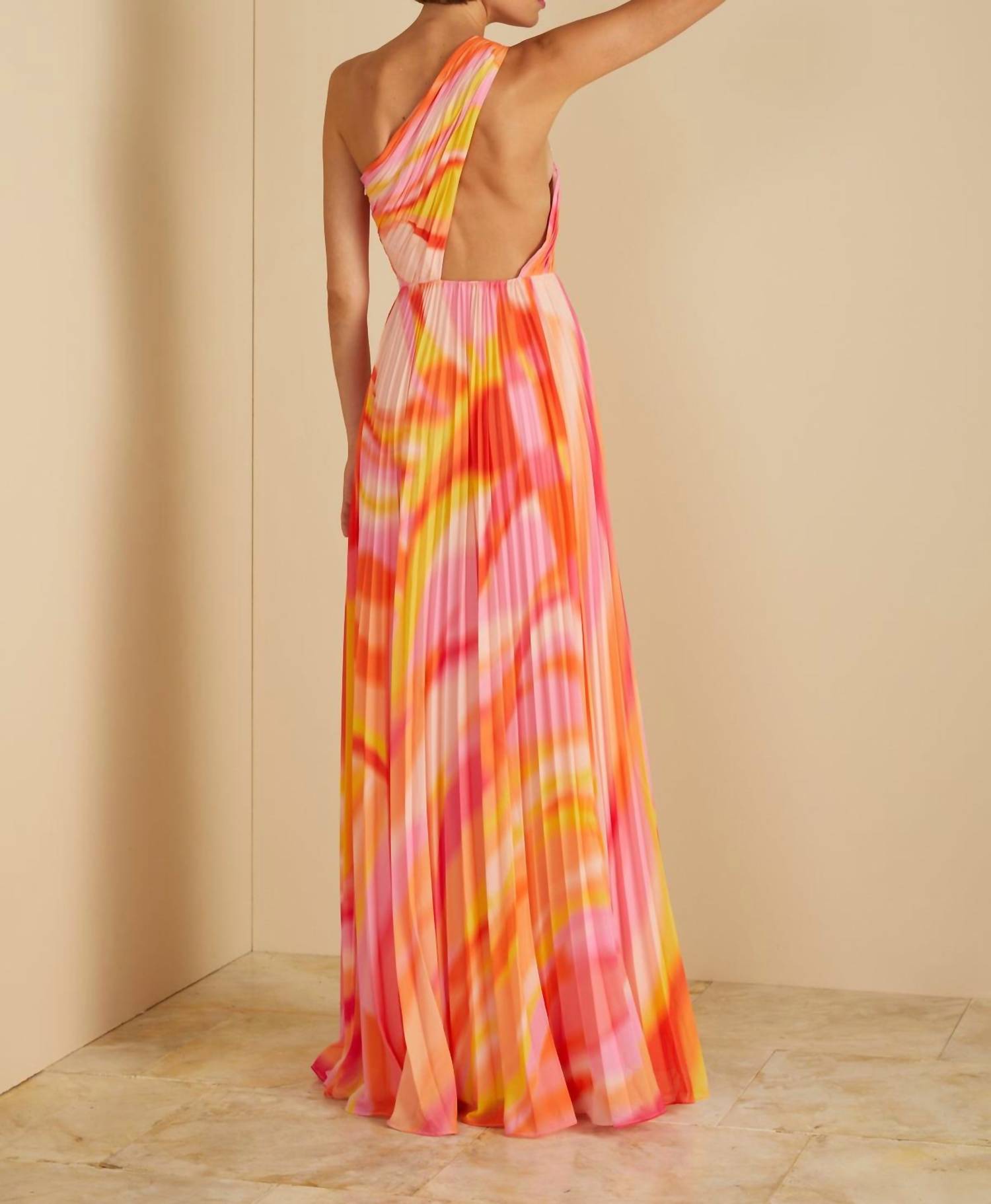 The AMUR Women's Morris Open Back Gown is a stunning choice for any cocktail party with its Sleeveless A-line silhouette and chic off-the-shoulder neckline, perfect for making a statement. Crafted from Polyester, this maxi dress features a fashionable blurred stripe pattern sure to turn heads. Designed in a minimalist pull-on style with no pockets, it embraces a maximalist trend effortlessly. For care, note that the gown is labeled with do not wash instructions.