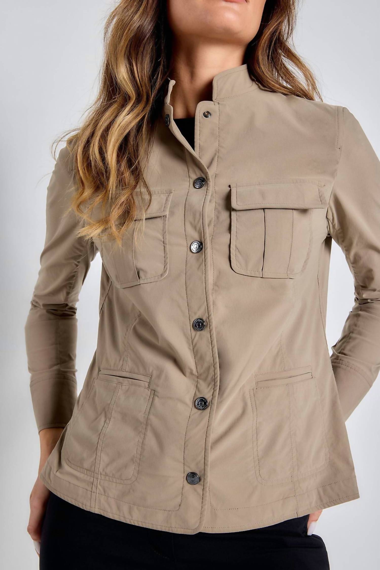 Uma jaqueta tão versátil que você pode usá-la com qualquer coisa. Apresentamos a Jaqueta Genova Ultra Light Performance Cotton da Anatomie, uma adição elegante a qualquer guarda-roupa em cáqui versátil. Esta jaqueta possui mangas compridas com punhos de pressão e gola mandarim, garantindo um visual elegante e sob medida. Confeccionada em uma mistura de 59% algodão, 37% poliamida e 4% elastano, proporciona conforto e estilo com um corte slim. Fecho: Botão de pressão frontal. Cuidados: Lavar à mão e secar no varal. O design funcional da jaqueta inclui dois bolsos no peito com abas e dois bolsos embutidos no quadril, tornando-a estilosa e prática.