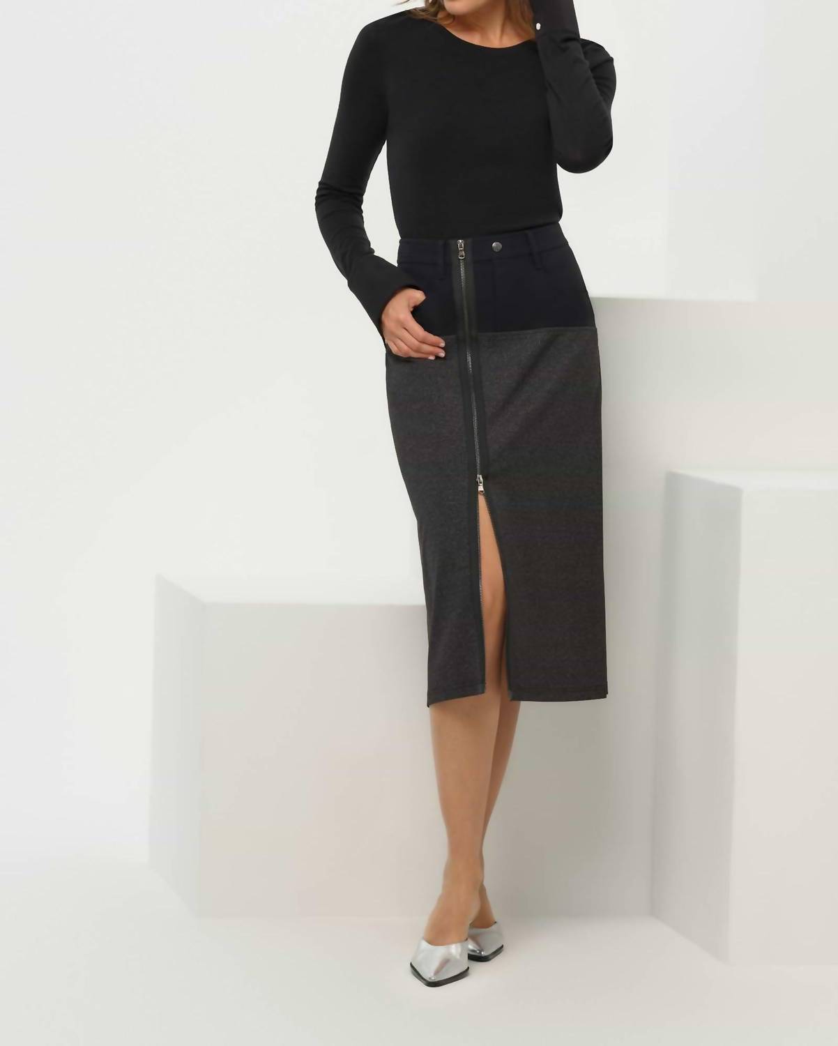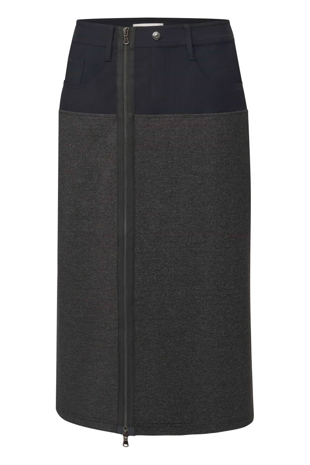Coloque sua camiseta favorita dentro desta saia de comprimento midi para um visual descolado e descontraído. Eleve seu estilo com a saia Zita da Anatomie, uma escolha sofisticada em preto/escuro. Esta saia midi apresenta um corte reto lápis com cintura alta e comprimento frontal de 73 cm para uma silhueta moderna. Confeccionada com sarja de alta performance com textura ponte elástica, combina 46% rayon, 33% nylon, 15% poliéster, 6% elastano e 94% poliamida e 6% elastano para conforto e flexibilidade extraordinários. Com fecho duplo de zíper, esta saia promete praticidade e sofisticação ousada. Cuidados: Lavar à máquina com água fria e secar na horizontal.
