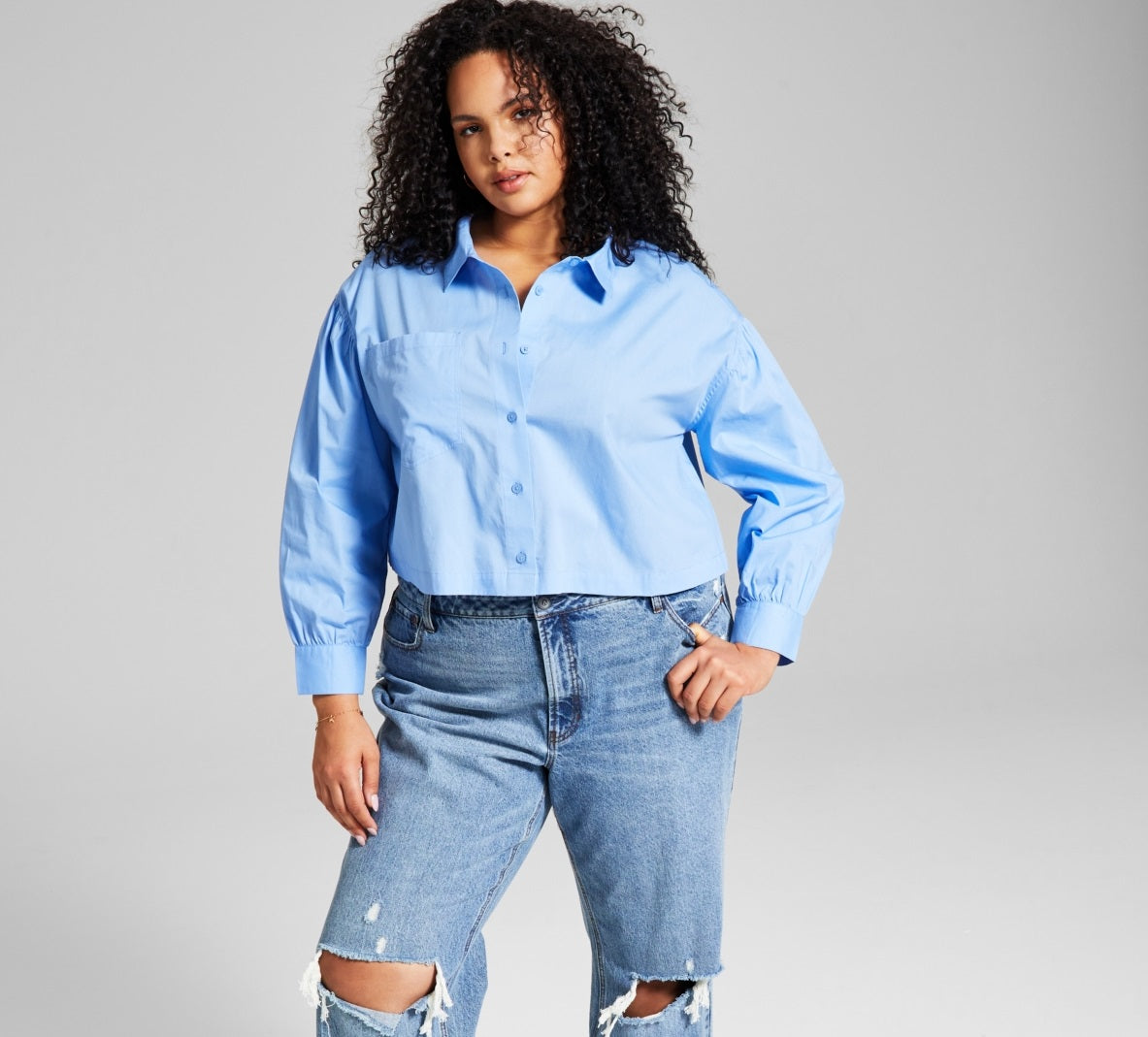 E agora esta blusa feminina de algodão com botões na frente, azul, tamanho 4X
