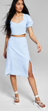 E agora esta saia midi com fenda lateral feminina azul tamanho M