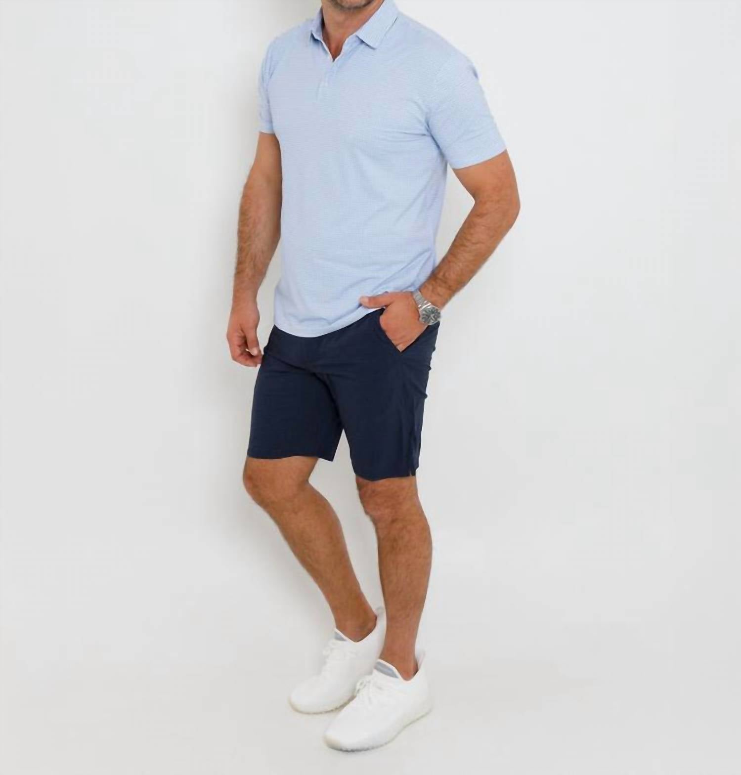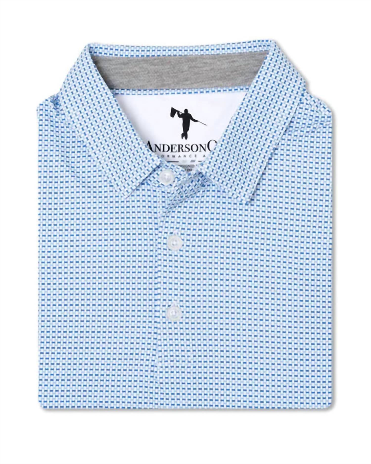 Introducing The Em Polo by AndersonOrd, a stylish choice for the modern man. This patterned polo features short sleeves and a classic collar, crafted from high-quality polyester. Designed in a sophisticated blend of White, Federal Blue, and Blue Fog, it offers effortless pull-on convenience. Care is simple with machine wash and tumble dry instructions, making it perfect for summer wear.