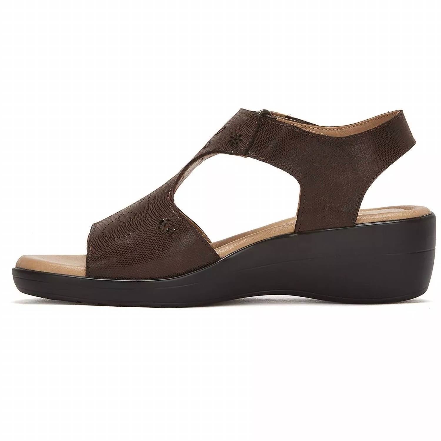 Clássico e charmoso, perfeito para usar o dia todo. Adoramos esta sandália. Esta sandália de couro com salto plataforma possui palmilha macia para conforto o dia todo e um elegante padrão de corte a laser para um toque de elegância. Com salto plataforma de 5 cm, ela proporciona a sustentação perfeita, tornando-a ideal tanto para passeios casuais quanto para reuniões noturnas.