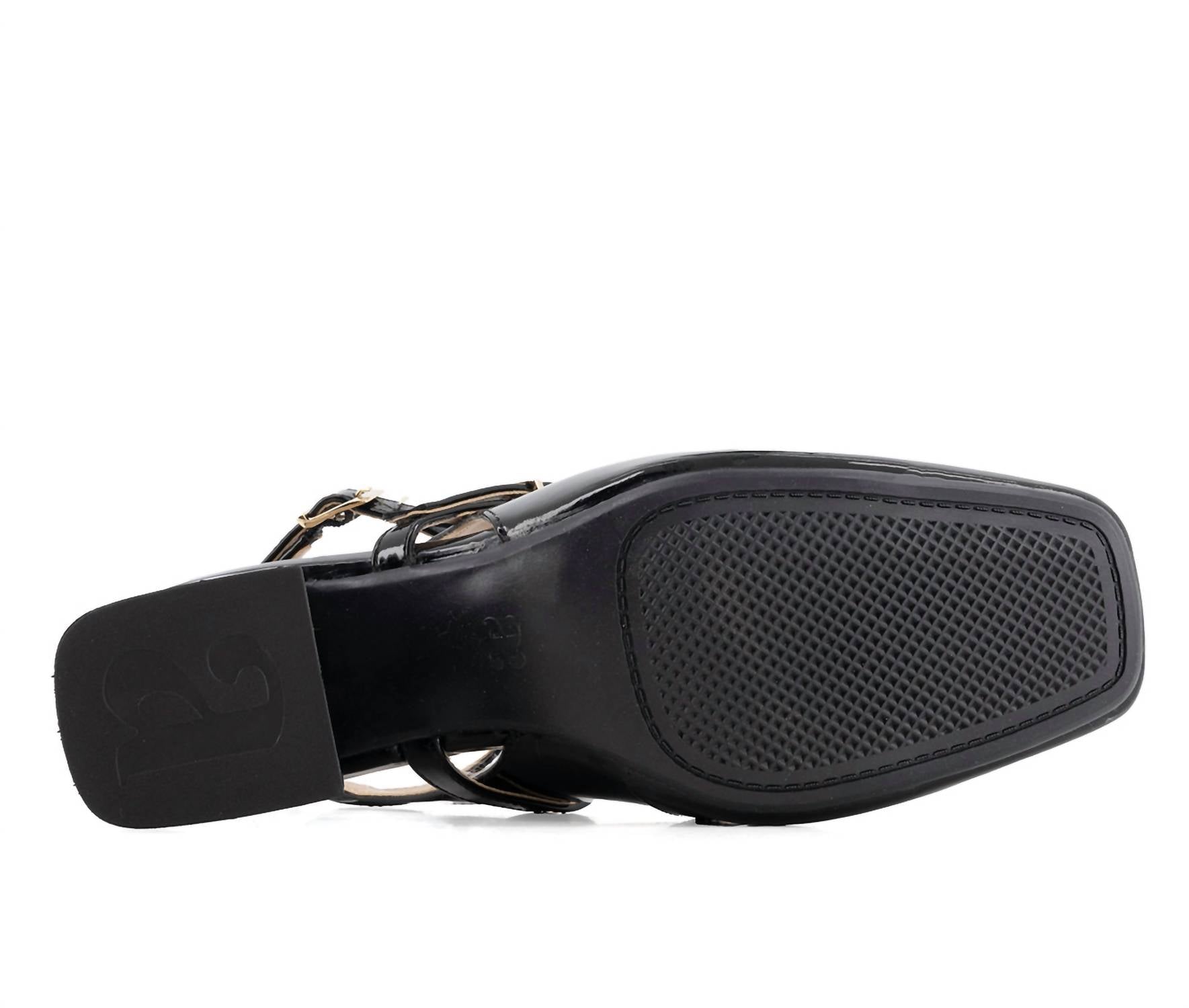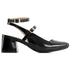 Presenting the Women's Patent Leatherette Pumps by Andrea, a stylish choice in sleek black designed for the modern woman. These shoes feature a squared toe and a mid block heel at 2.5 inches, perfect for adding elegance to both workwear and evening looks. The double ankle and upper straps ensure a perfect fit, while the foam padded insole and soft touch lining offer superior comfort. Crafted from nylon with a patent finish, these pumps feature an anti-slip outsole, making them ideal for spring dinner parties or any stylish occasion.