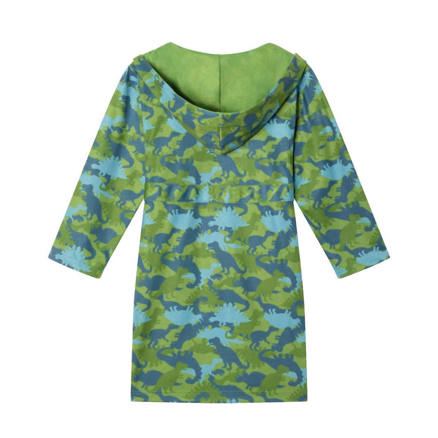 Introducing the Boys' Jersey Knit Robe by Andy & Evan, a playful addition to your child's wardrobe in an adventurous green dino camo. Made with 100% polyester, this robe is designed for durability and softness, ensuring a comfy fit. Featuring a fun dinosaur camouflage print, it's perfect for your little explorer's downtime. Closure: Tie-front. Care: Machine wash, tumble dry.