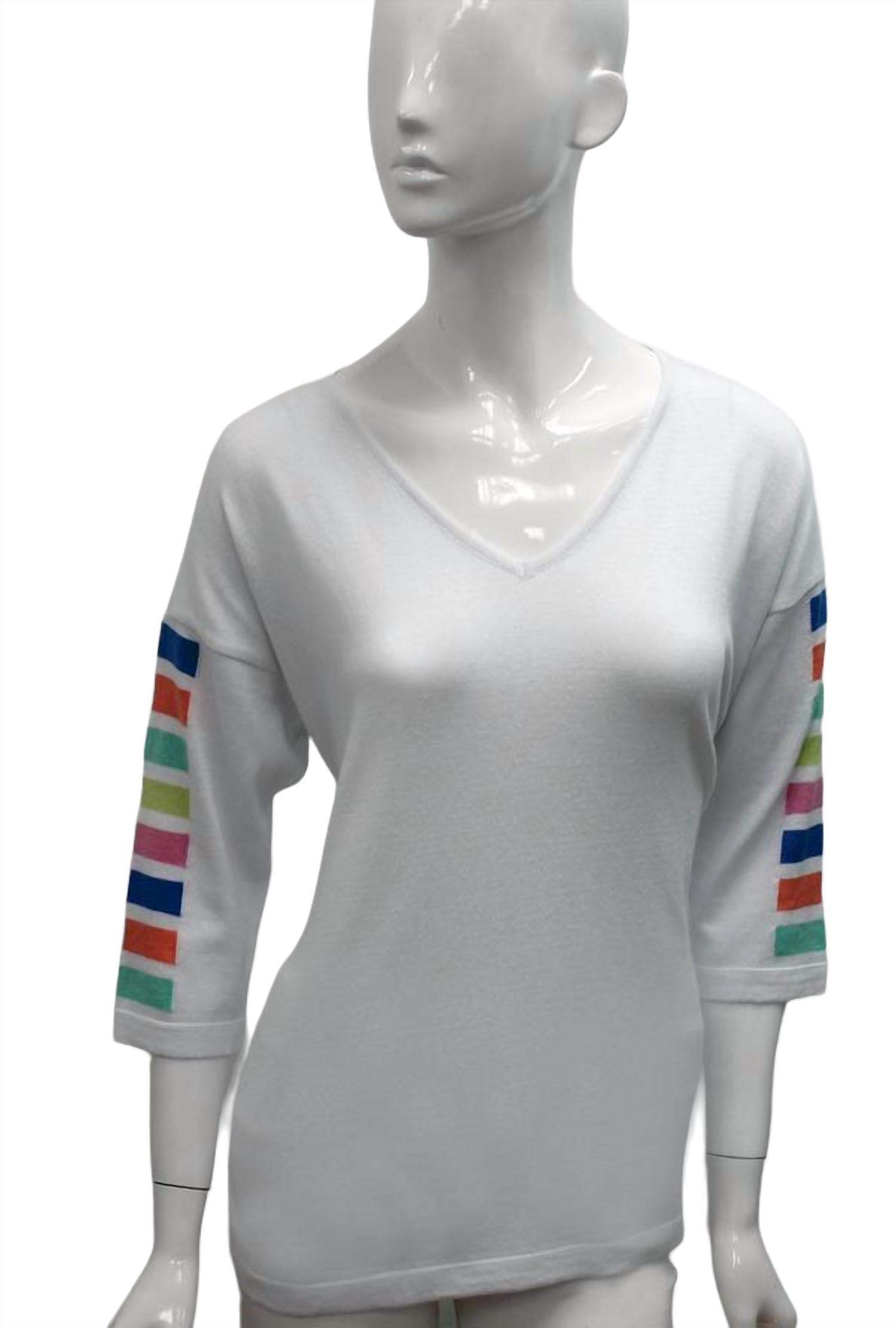 Angel - Top listrado com manga 3/4 e decote em V