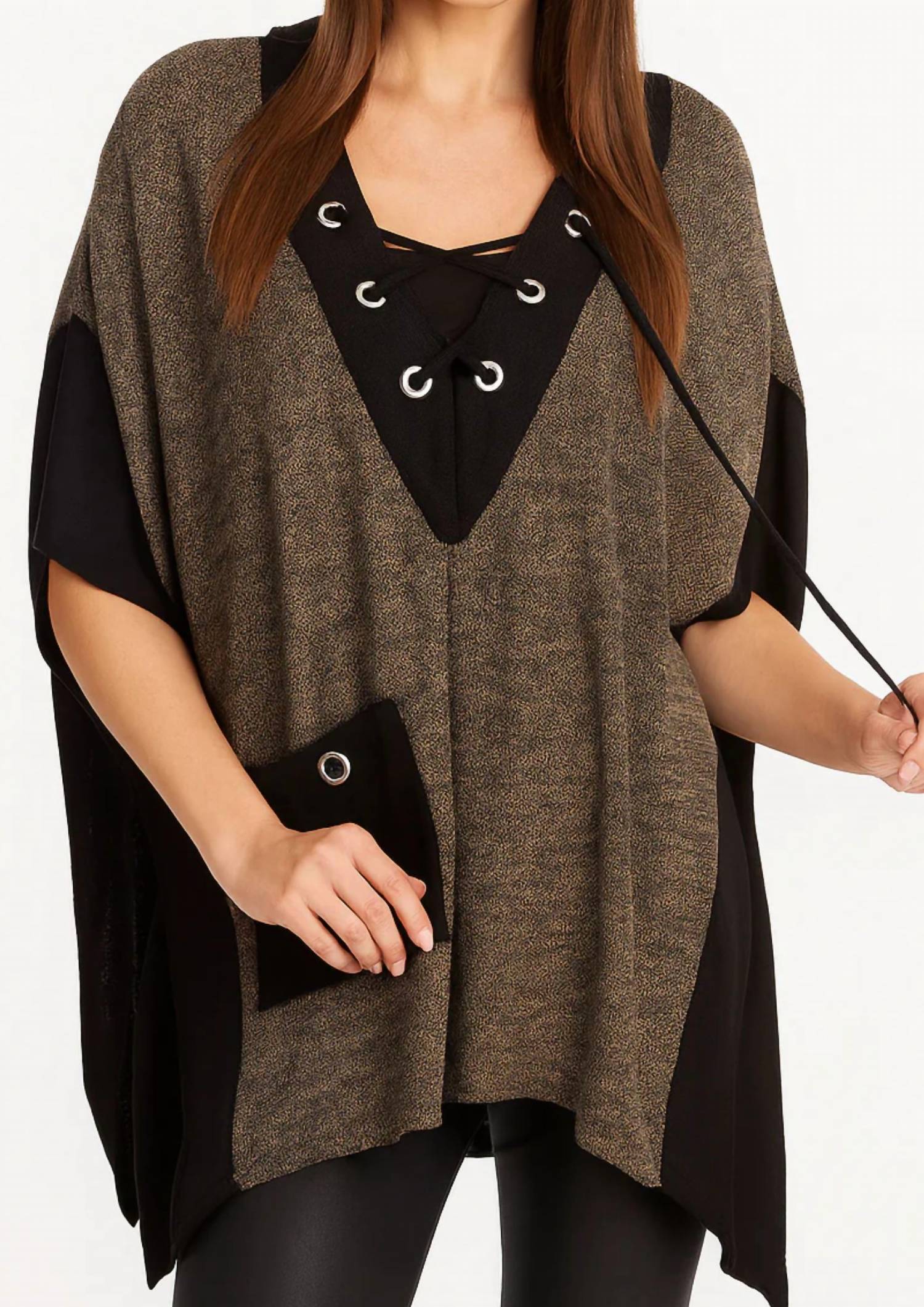 Introducing the Stone V-Neck Tie Up Poncho by Angel Apparel, a chic addition to your spring wardrobe. This sleeveless poncho, made from a blend of 55% cotton and 45% acrylic, offers a luxurious feel and drapes elegantly to hit at the thigh. With its solid pattern and pull-on closure, it’s perfect for vacations or Mother’s Day outings. Care is simple with delicate hand wash or dry clean, ensuring it retains its beautiful Y2K-inspired style.