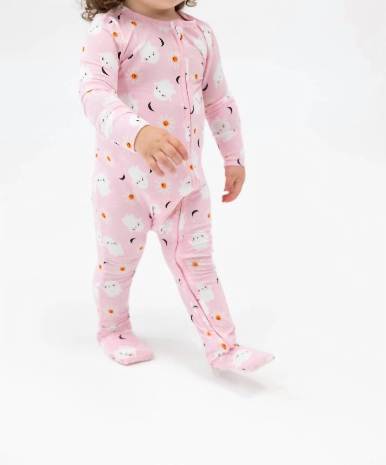 Introducing the ANGEL DEAR Girl's Two Way Zipper Romper in a charming Spooky Ghost pattern, perfect for a festive holiday party. This patterned romper boasts a soft, viscose blend composition (95% viscose from bamboo, 5% spandex), ensuring maximum comfort and flexibility. Features include fold-over cuffs to prevent scratches, a lined 2-way zipper with a chin guard, and convenient foot grippers. Care is simple with machine wash on a gentle cycle and low tumble drying, making it ideal for sensitive skin and busy holiday seasons.