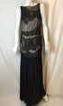 Introducing the Women's Lace Chiffon Gown by Angelo Tarlazzi, a stunning piece in elegant black perfect for vacation wear. This sleeveless maxi gown showcases a textured pattern with a graceful A-line silhouette and a sophisticated boatneck. Closure: Zip closure. Ideal for summer, this monochrome gown blends timeless style with modern charm.