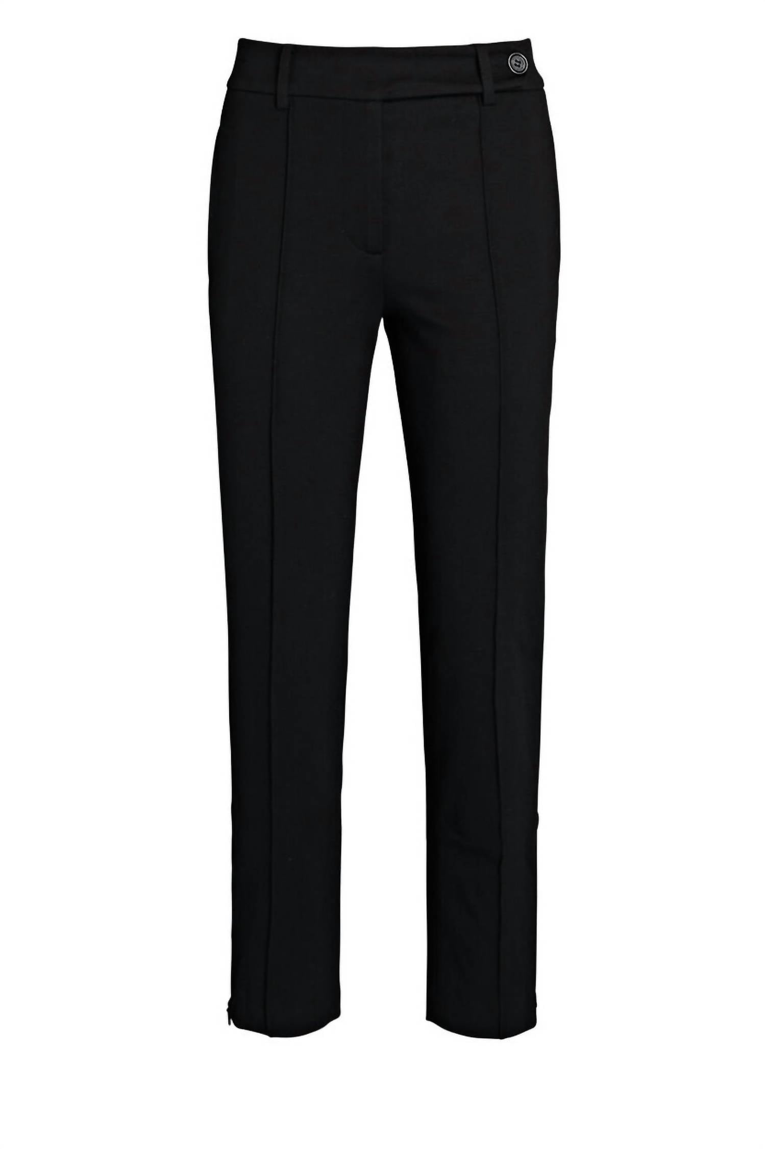 The Ian Slim-leg Pant by ANINE BING is an elegant addition to any wardrobe, presenting a refined Scandinavian aesthetic in smooth black ponte. Designed with a high-rise and slim fit, these pants feature a 10" rise and a 27" inseam, complete with belt loops and four-pocket styling for practicality. Composition includes 68% rayon, 25% polyamide, and 7% spandex, with a lining of 100% viscose, ensuring both style and comfort. Closure is managed via a zip fly and button closure, and the pants are machine washable for easy care. Imported and modeled in a size DK 34 by a model with height 5'10", bust 31", waist 24", and hips 34".