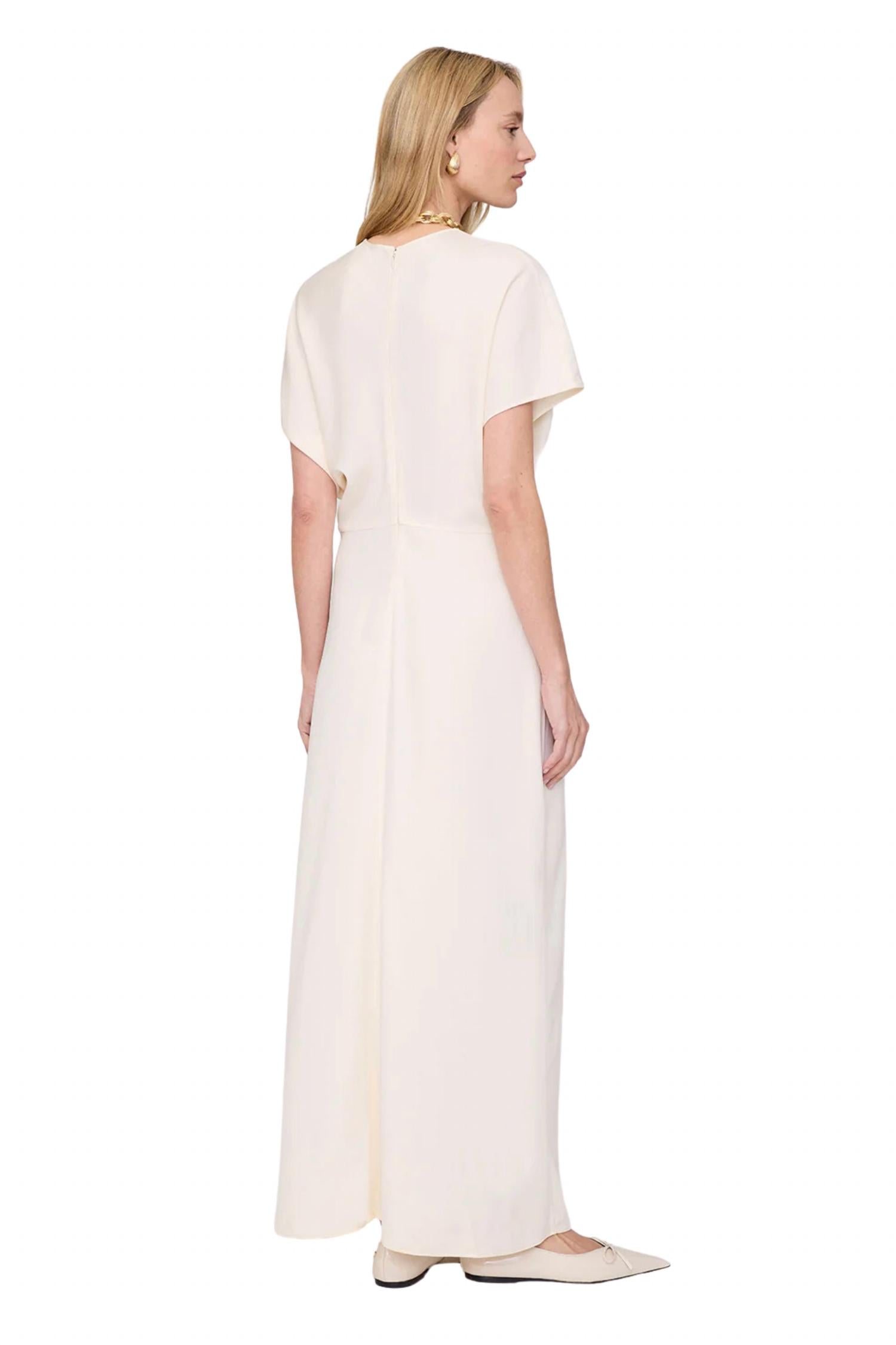 A maxi dress that is just as cute as it is comfortable. Embrace minimalist elegance with the Anine Bing Zadig Maxi Dress, perfect for a chic vacation look. This solid ivory dress features short sleeves and an A-line silhouette with a flattering V-neckline, crafted from a viscose blend for a comfortable fit. Composition: 94% Viscose, 6% Spandex. Closure: Back zipper closure. Care: Dry clean recommended. Ideal for spring outings and special occasions like Mother's Day.