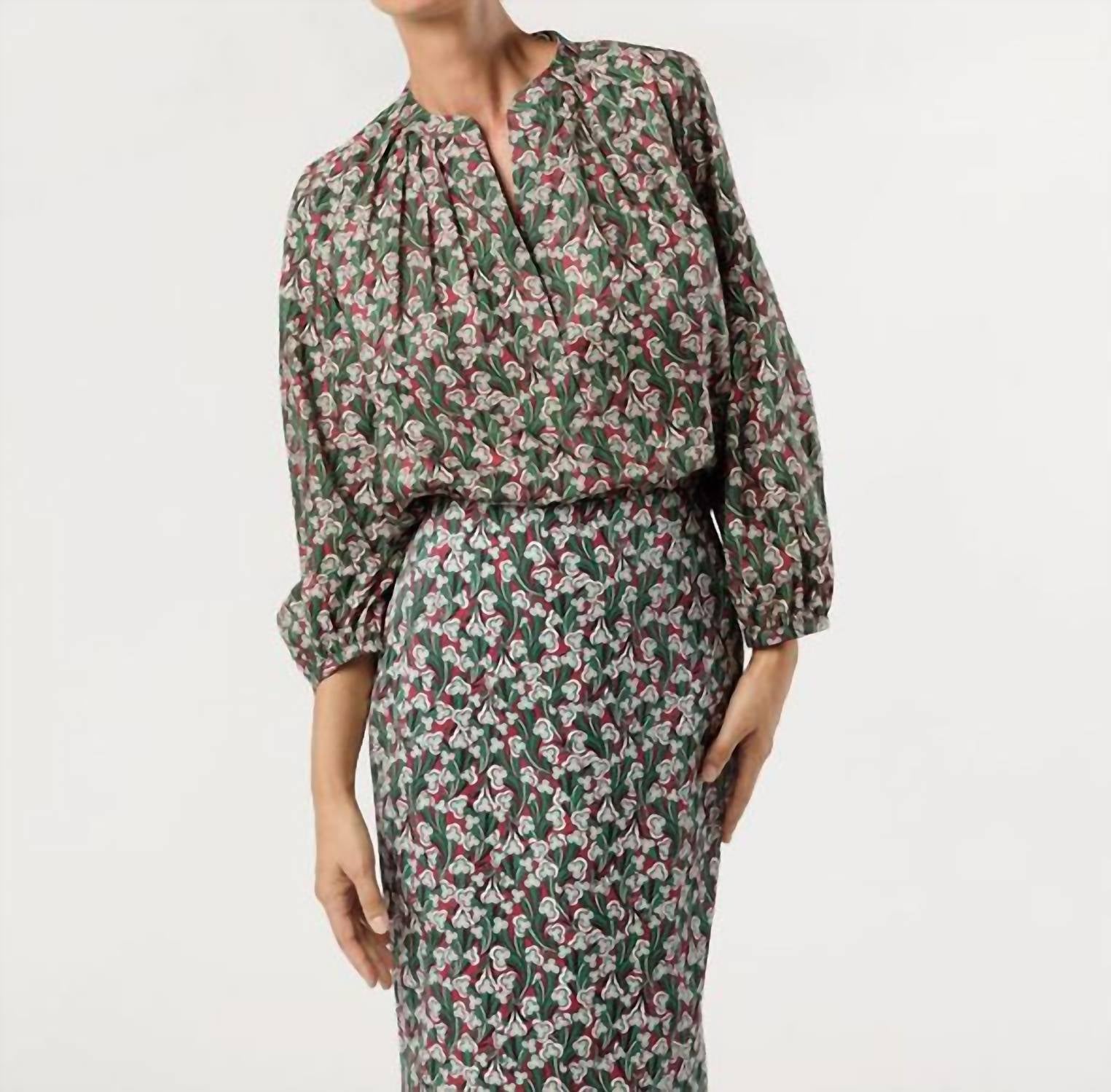 Discover the Sienna Top by Ann Mashburn, a must-have for its flattering silhouette and peasant-inspired details. This long sleeve blouse, in a vibrant crimson/multi pattern from Liberty Fabrics, is crafted from 100% premium cotton in Vietnam. The pull-on closure and V-neckline make styling effortless. Care for this beautiful piece with machine wash and line dry instructions; a medium iron will keep it looking fresh and chic. Model is 5'8" and wears a size S.
