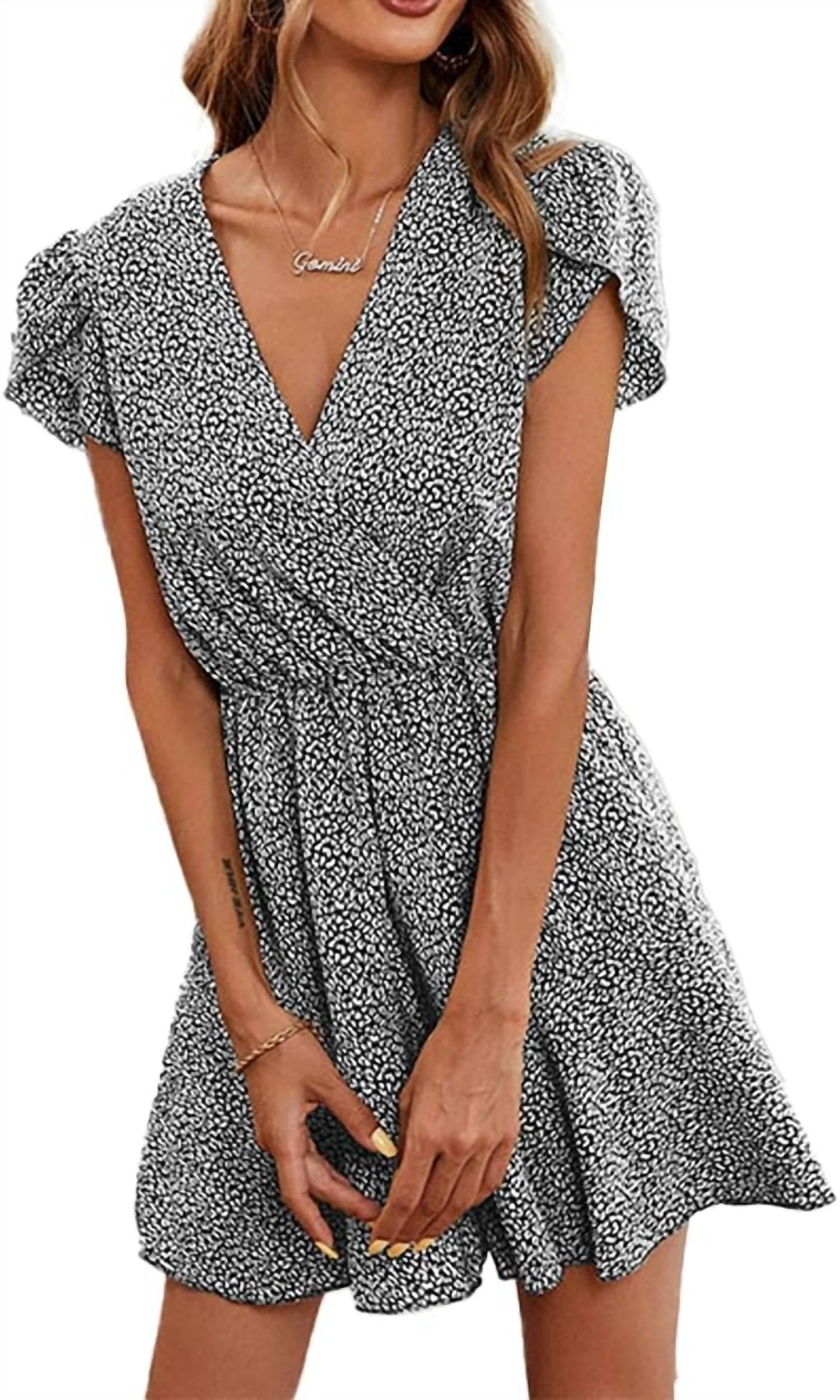 Apresentamos o Macacão Curto Estampado da Anna-Kaci, uma peça chique com estampa animal, perfeita para qualquer ocasião casual. Com mangas bufantes estilosas e um decote em V charmoso, este macacão é confeccionado em 100% poliéster para um ajuste confortável. Ele vem em uma combinação marcante de preto e branco e possui um fecho prático. Cuide desta peça com uma lavagem simples na máquina para facilitar a manutenção.