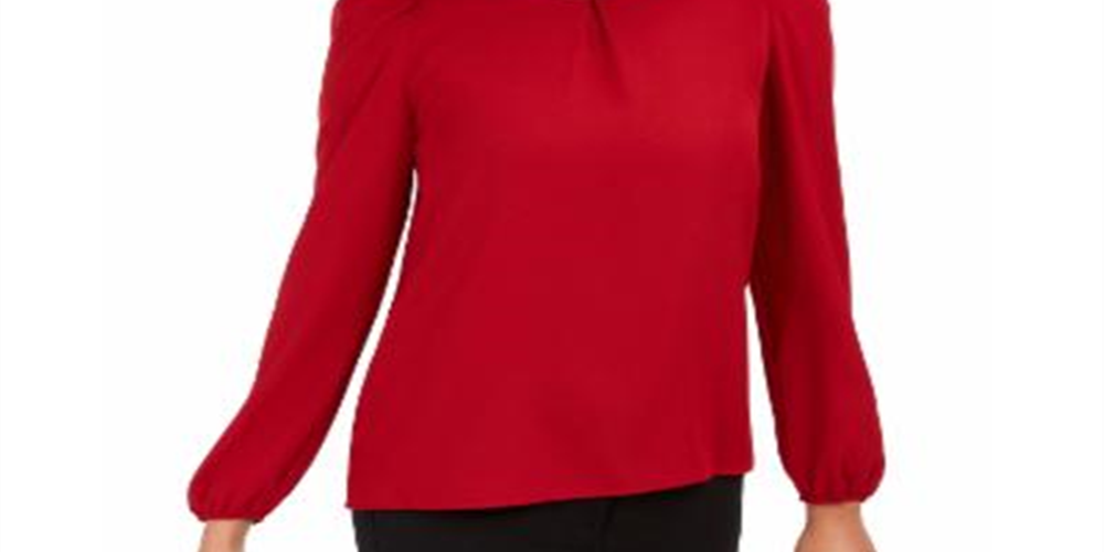 Blusa franzida feminina Anne Klein, manga longa, vermelha, tamanho XX-S