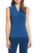 Blusa feminina Anne Klein plissada com decote em V, azul, tamanho XX-S