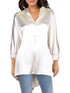 Anne Klein Top Túnica Feminina de Cetim Hi-Low Branco Tamanho Grande