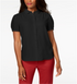 Ask a question about Blusa feminina Anne Klein de manga curta com botões, preta, tamanho 8