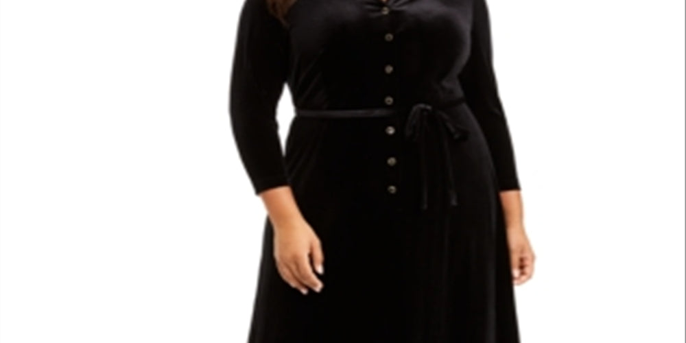 Vestido de veludo feminino Anne Klein com botões e corte evasê, preto, tamanho 24W