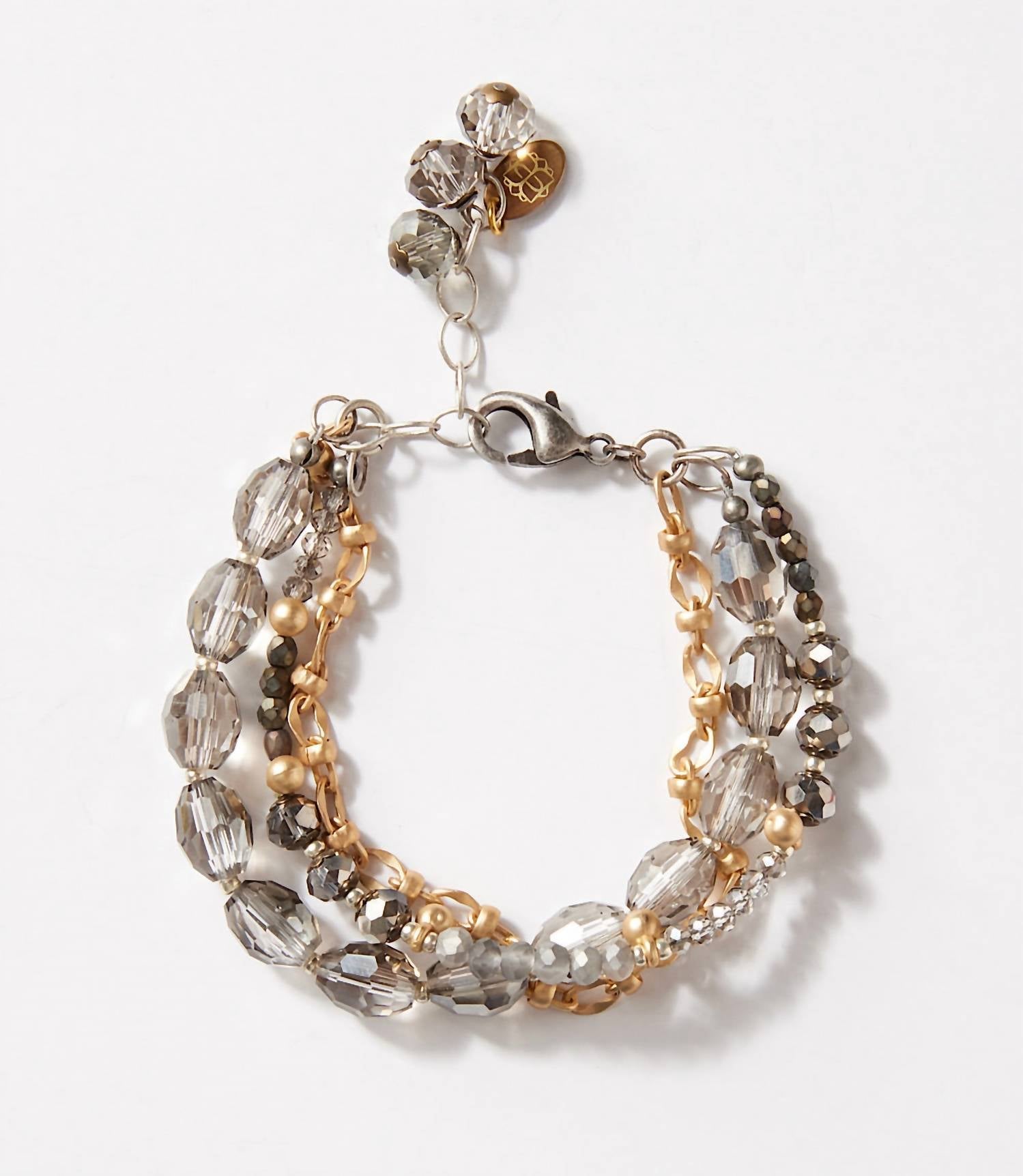 Esta pulseira de destaque é boa o suficiente para ser usada sozinha ou combinada com suas favoritas. Apresentamos a Pulseira Feminina Multistrand Crystal da Anne Vaughan, uma peça cativante projetada para adicionar elegância a qualquer visual. Esta pulseira apresenta três fios de quartzo fumê, cristais cinza e um elo de corrente dourado, criando um efeito de camadas deslumbrante. Fabricada nos EUA, mede 18 cm de comprimento com um extensor de 2,5 cm e pesa apenas 20 g. Perfeita para realçar seu visual com um toque de brilho sem esforço.