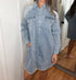 The AnnieWear Darla Button Down Shirt Dress in light denim offers effortless chic with its long sleeves and classic collar. Made from 75% cotton, 22% polyester, and 3% spandex, this 35-inch dress provides a relaxed, oversized fit perfect for travel or streetwear seasons. Featuring pockets and a snap button closure, this dress transitions seamlessly from casual to dressed-up occasions. Machine wash for easy maintenance.