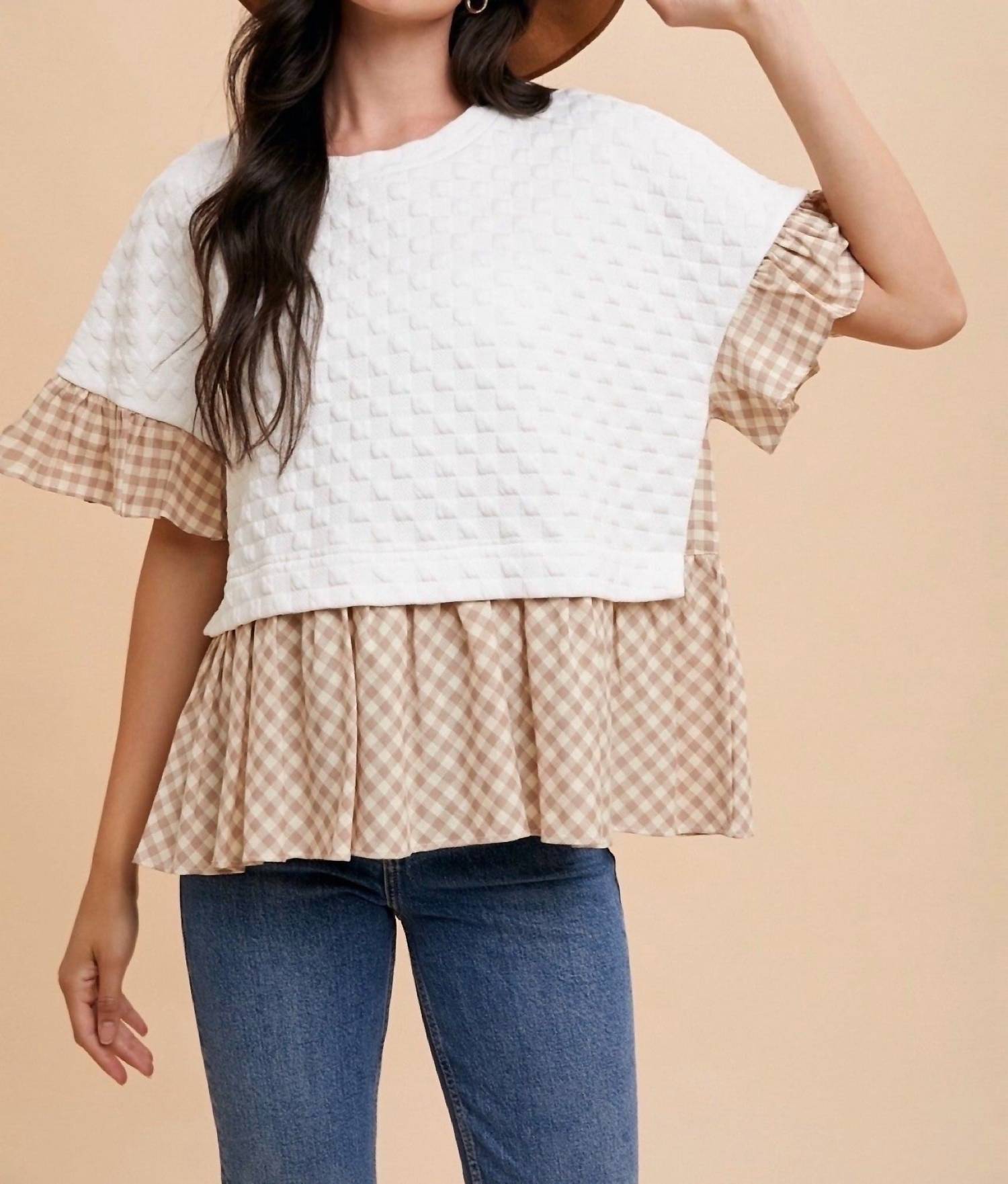 A camiseta de manga curta que você vai querer em todas as cores. Fusão chique de textura aconchegante e charme vintage. Apresenta um corpete de malha de poliéster macio perfeitamente combinado com bainha e mangas em xadrez xadrez, criando um visual em camadas sem volume adicional. Fácil de vestir. Lavagem à mão. Oferece um ajuste elegante e descomplicado com um design clássico de gola redonda.