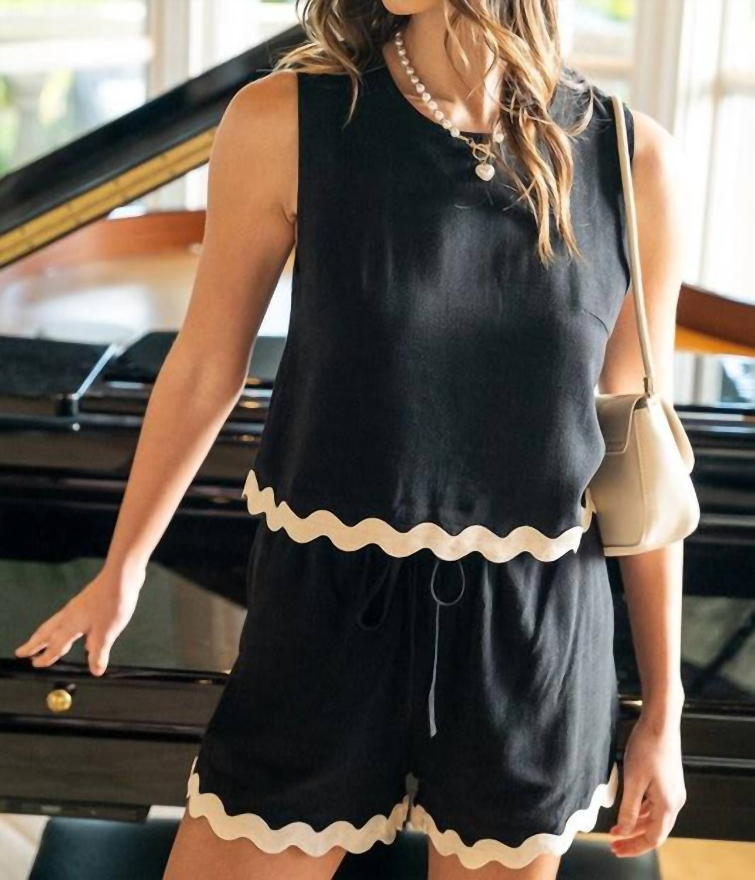 Anniewear - Ric Rac Trim Detailed Top and Short Set