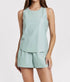 Upgrade your wardrobe with the China & Carmela Faux Leather Set by Another Love, a chic choice in aquamarine for your vacation attire. This set includes a sleeveless tank with a sophisticated curved hem and unique contrast back design, perfect for layering or wearing alone. Composed of 45% polyurethane and 55% polyester with a 95% rayon, 5% spandex contrast, it offers comfort and style. Imported and easily maintained, simply hand wash cold and dry flat. The tank measures 23 1/2" in length from the high point of the shoulder, with a 35" bust, on a model wearing size X-Small.