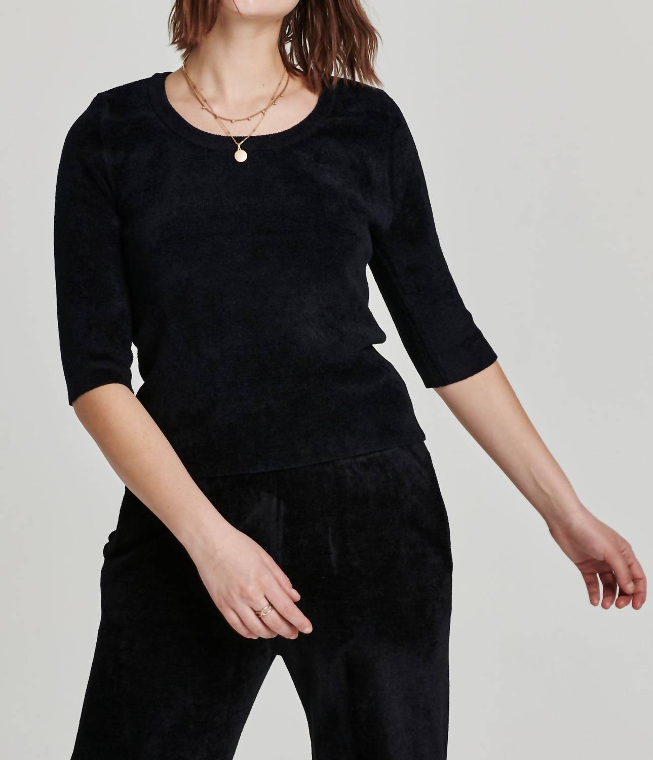 Embrace minimalist style with the Leo Scoopneck Top by Another Love, perfect for spring vacation wear. This women's long-sleeve tee features a flattering scoop neckline and solid black design. Sleeve Length: Three-quarter Sleeve. Closure: Pull-on style for effortless dressing. Ideal for adding a sleek and polished look to any casual outfit.