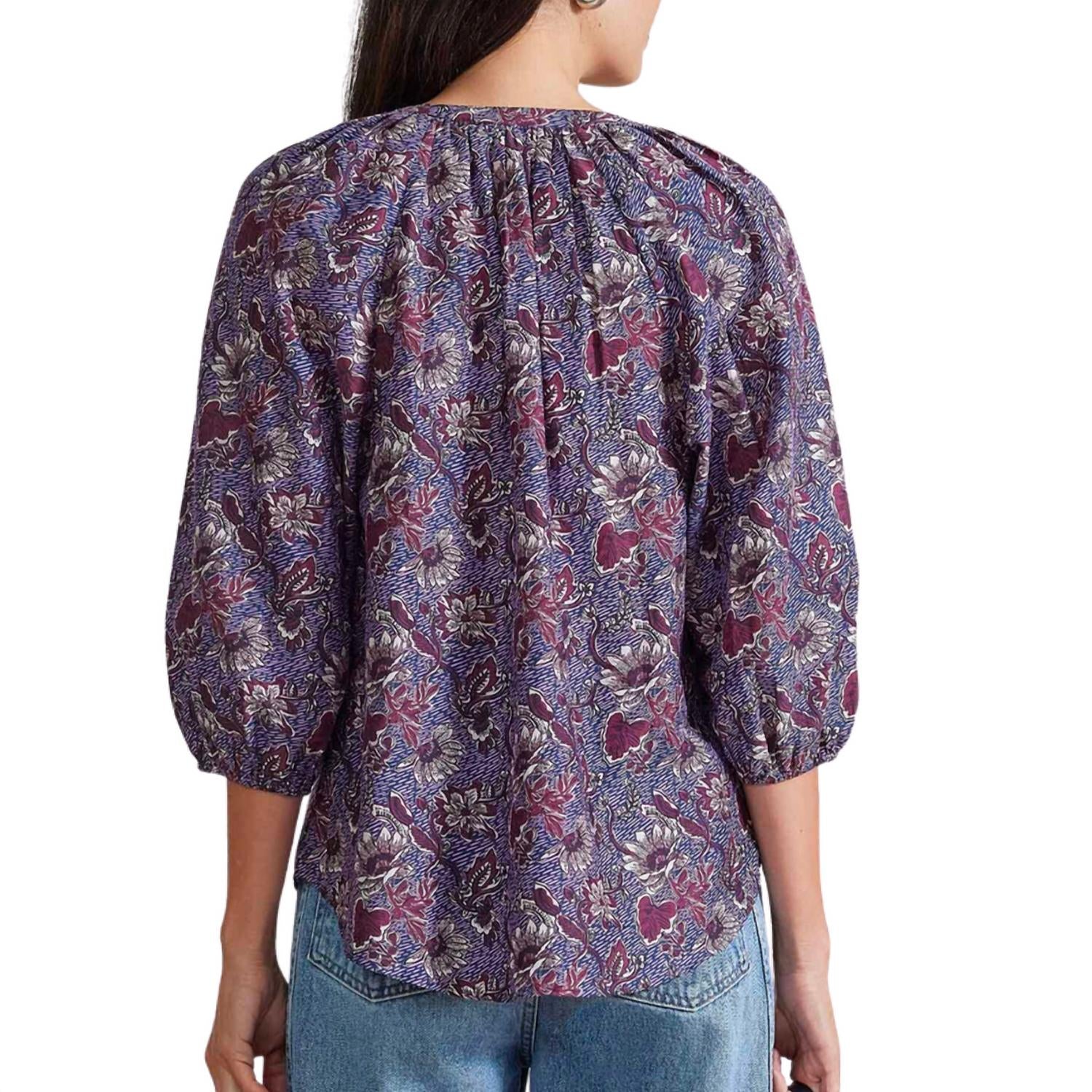 Com mangas bufantes discretas com punhos elásticos, fecho frontal por botões e decote em V aberto com franzidos na gola canelada para um estilo elegante e feminino. Tecido: Algodão, Seda. Lavagem a seco. Tamanho real.