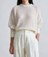 Wrap yourself in sheer luxury with the Softest Tissue Weight Sweater by APIECE APART. This cream essential is crafted from a sumptuous 75% Cashmere and 25% Silk blend, offering a lightweight yet warm layer perfect for travel or seasonal transitions. Featuring a relaxed fit, long sleeves, and a classic crew neckline, its drop shoulder design is complemented by ribbed trims at the cuffs, collar, and hem. Made in China, this minimalist striped piece is a sophisticated choice for endless styling possibilities, best maintained with dry cleaan care. Model is 5'10" and wearing a size small.