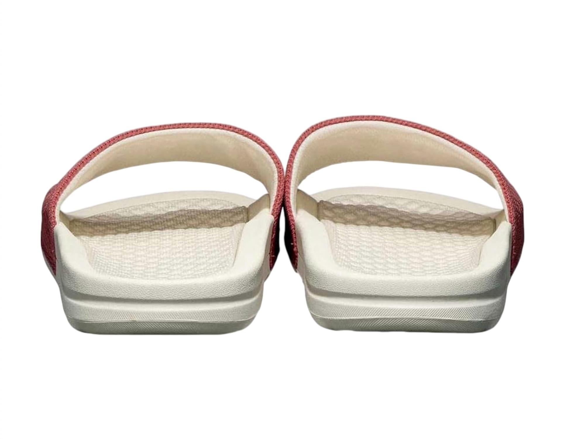 Flowy dresses, cropped pants, and even jumpsuits... this sandal works with them all! Introducing the Women's Big Logo Techloom Slide by APL, a perfect blend of style and comfort for your summer vacations. These minimalist sandals feature an open toe design with a flat heel, making them ideal for leisurely strolls. The stylish ivory and cedar colors add a chic touch to your casual outfits. Designed for adult women, these slides are a must-have accessory for the sunny season.