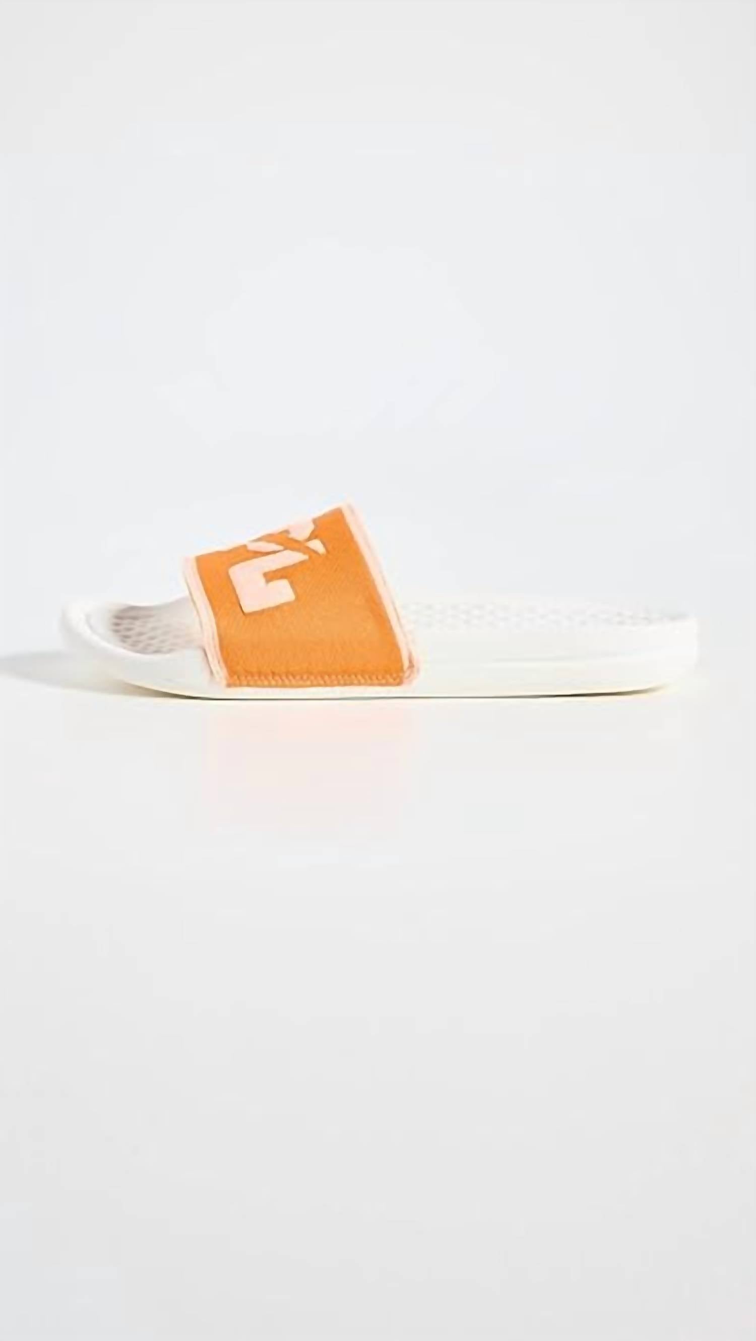 Step into relaxation with the Women's Big Logo Techloom Slide from APL, perfect for your next vacation or Thanksgiving gathering. These stylish slippers in a vibrant Ivory, Orange, and Neon Peach combination feature an open toe design ideal for summer streetwear. Designed specifically for women, they effortlessly blend comfort and trendiness for those laid-back occasions. Indulge in the ultimate relaxation experience with these chic slides.