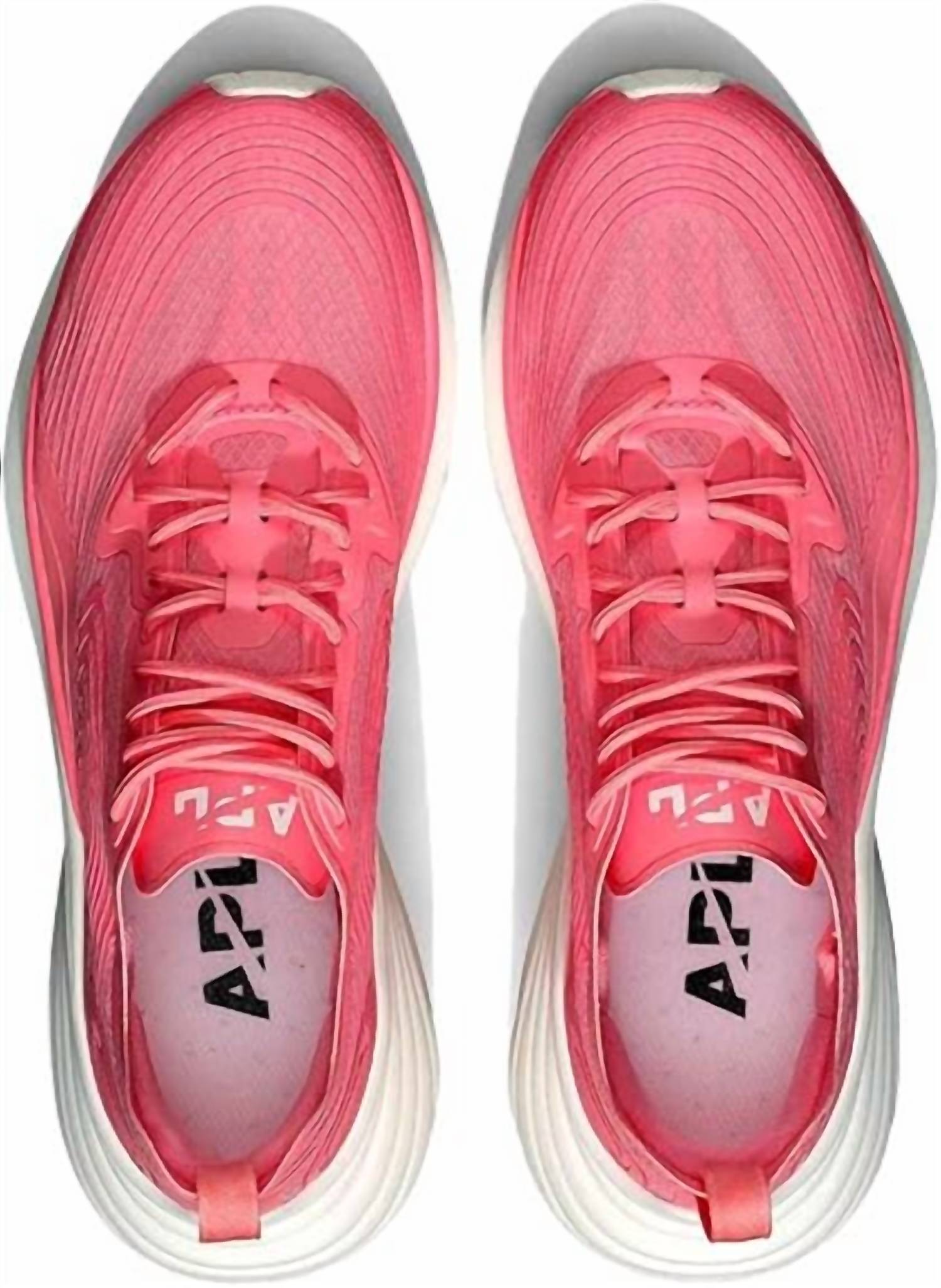 When fashion meets function. Step into style and comfort with the Women's Streamline Shoe by APL, designed in a vibrant Fire Coral Ivory hue. These athletic shoes feature a solid pattern and a round toe, perfect for fitness and workout occasions. They showcase a chic chunky heel with a low height of 1 1/4" to 2", merging fashion with function for the athleisure trend. Ideal for spring and tailored specifically for adult women, these shoes are perfect for those who prioritize performance and trendiness.