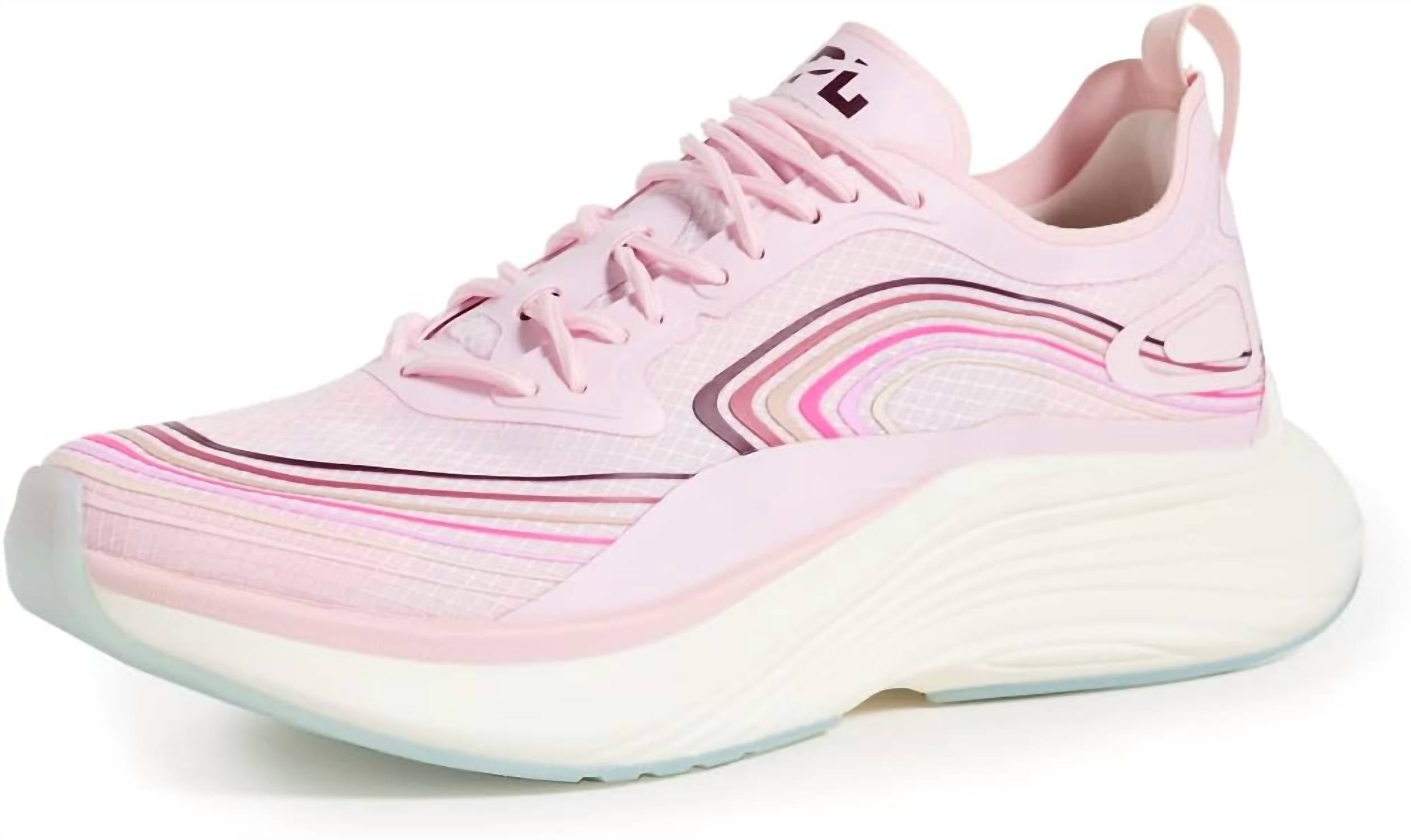 Introducing the APL Streamline athletic shoes, designed for women who embrace the athleisure trend. These shoes feature a striking Bleached Pinkburgundy White color combination and a comfortable round toe shape, perfect for fitness and workout sessions. With low chunky heels ranging between 1 1/4" and 2", they offer just the right amount of lift for a supportive stride. Ideal for spring, these shoes are crafted to seamlessly blend style and performance.