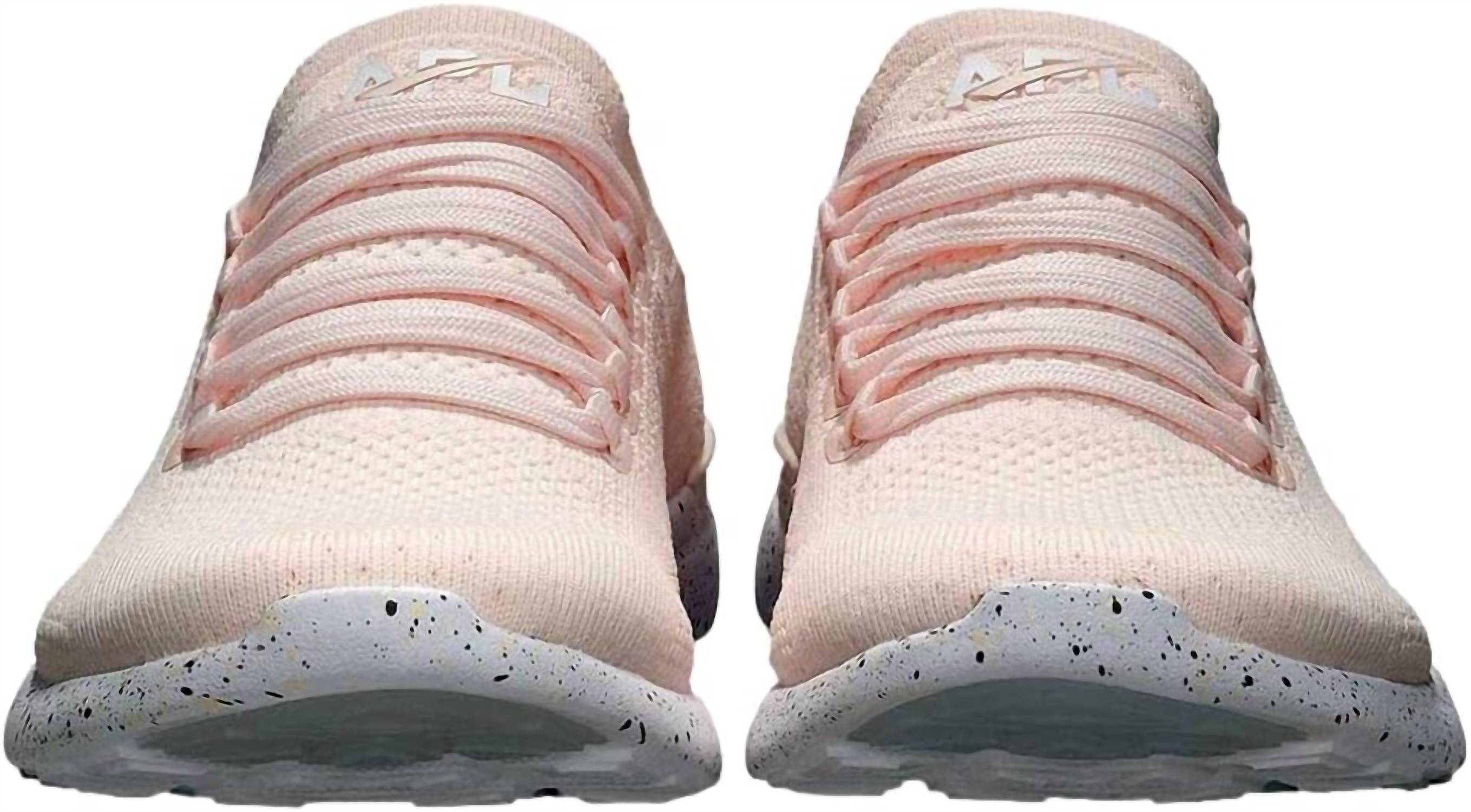 Step into fitness chic with the Women's Techloom Breeze by APL, presented in a delectable Creme Vanilla Chocolate hue. Designed for women and perfect for enhancing your athleisure wardrobe, these sneakers feature a round toe and a flat heel for optimal comfort during workouts. With a low heel height measuring between 1 1/4" and 2", they provide superior support for your fitness endeavors. Embrace the spring season with style and elegance in these athletic sneakers tailored for adults.