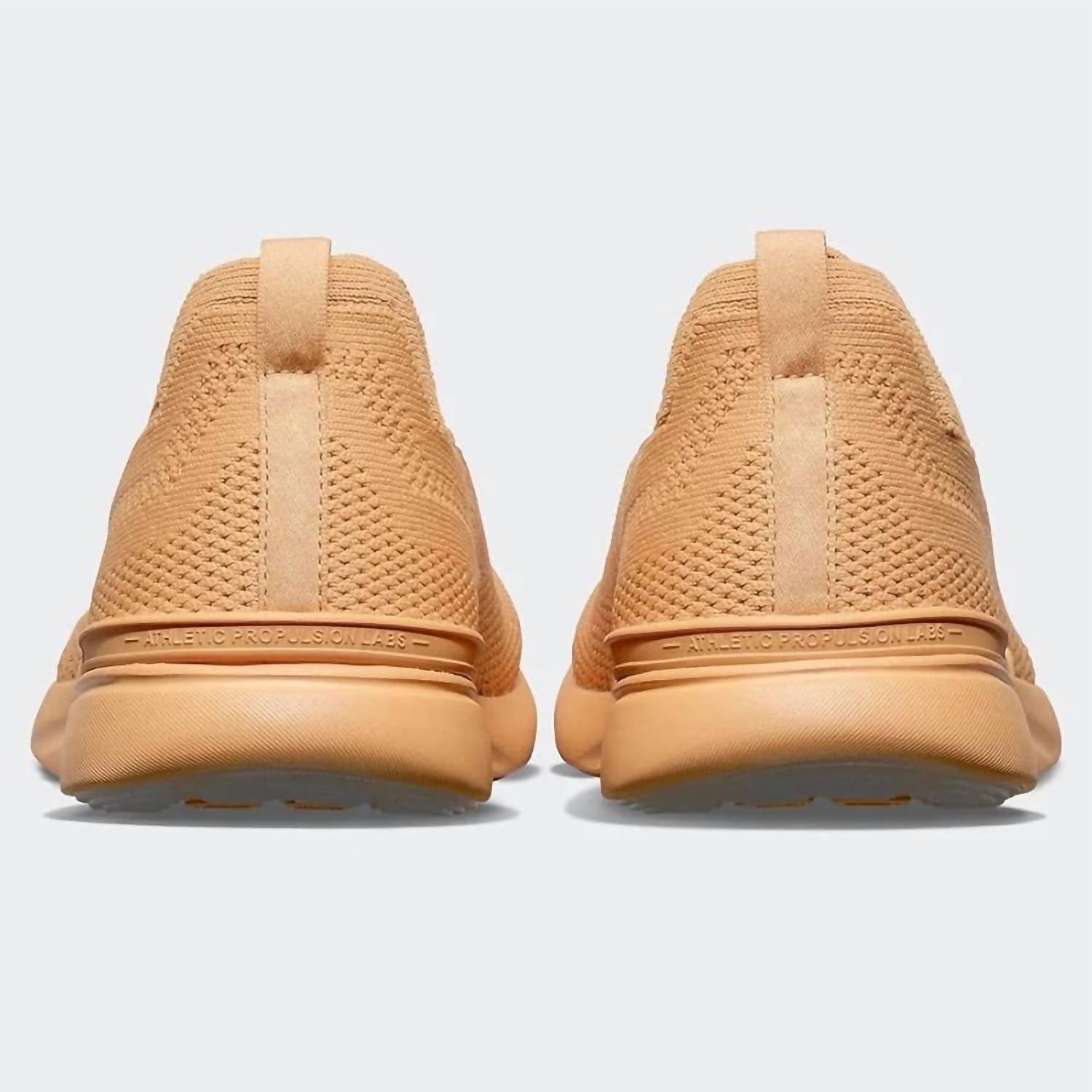 Introducing the APL Women's Techloom Breeze Sneaker, a perfect blend of style and functionality in Tan Pristine Speckle. Designed with a trend-forward athleisure vibe, these sneakers feature a comfortable flat heel, ideal for fitness workouts in the spring season. The round toe shape offers a snug fit, while the low heel height of 1 1/4"-2" ensures cushioned support during any activity. Elevate your workout wardrobe with these stylish sneakers tailored for the contemporary woman.
