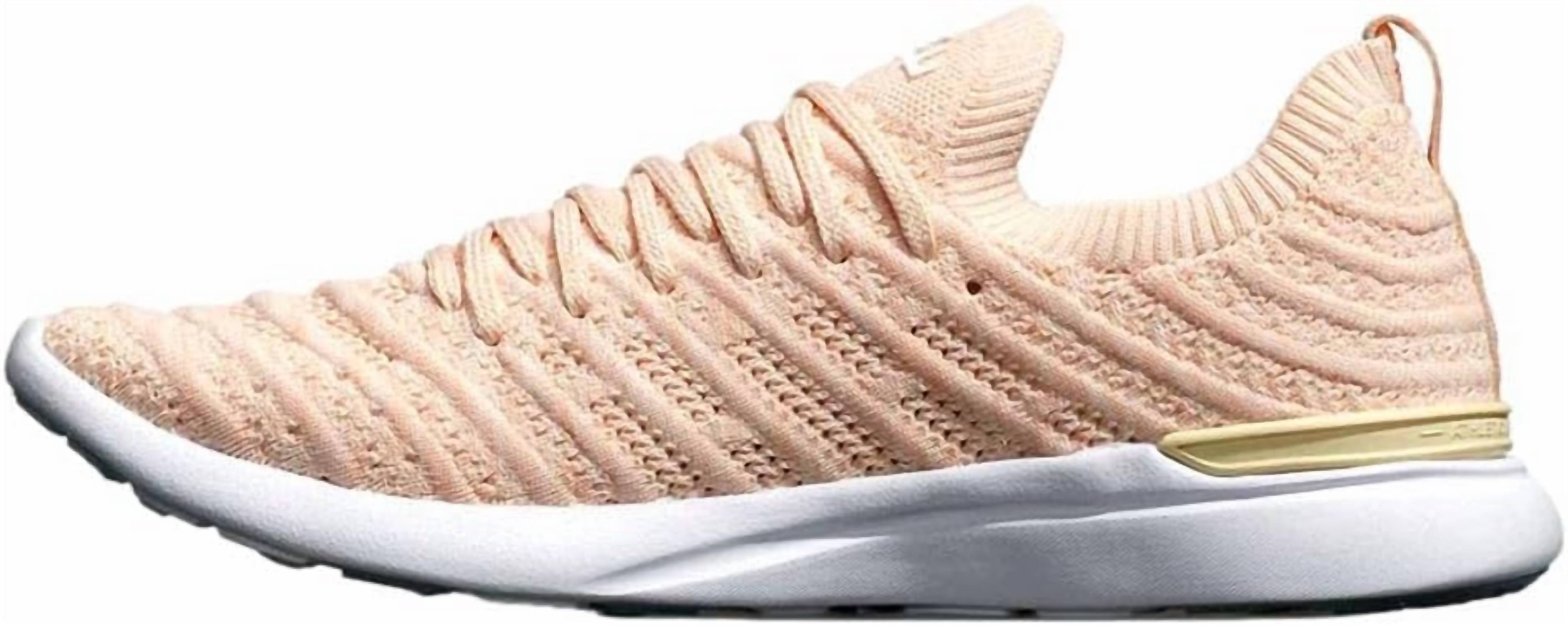 Get your daily steps in with these adorable sneakers. Slip into the Women's Techloom Wave Sneaker by APL, a perfect blend of style and function for your spring athleisure collection. Designed with a Vanilla Creme Melange color, this sneaker features a round toe and flat heel, crafted for fitness or workout occasions. Enjoy the low heel height that ranges from 1 1/4" to 2", ensuring comfort and support with every step. Made for women, these sneakers are an ideal choice for an active lifestyle.