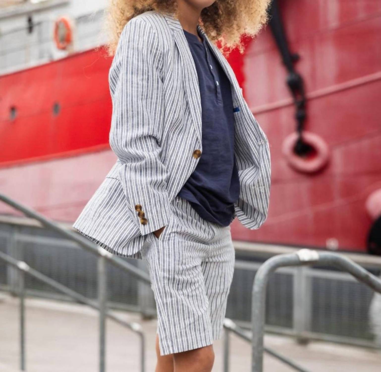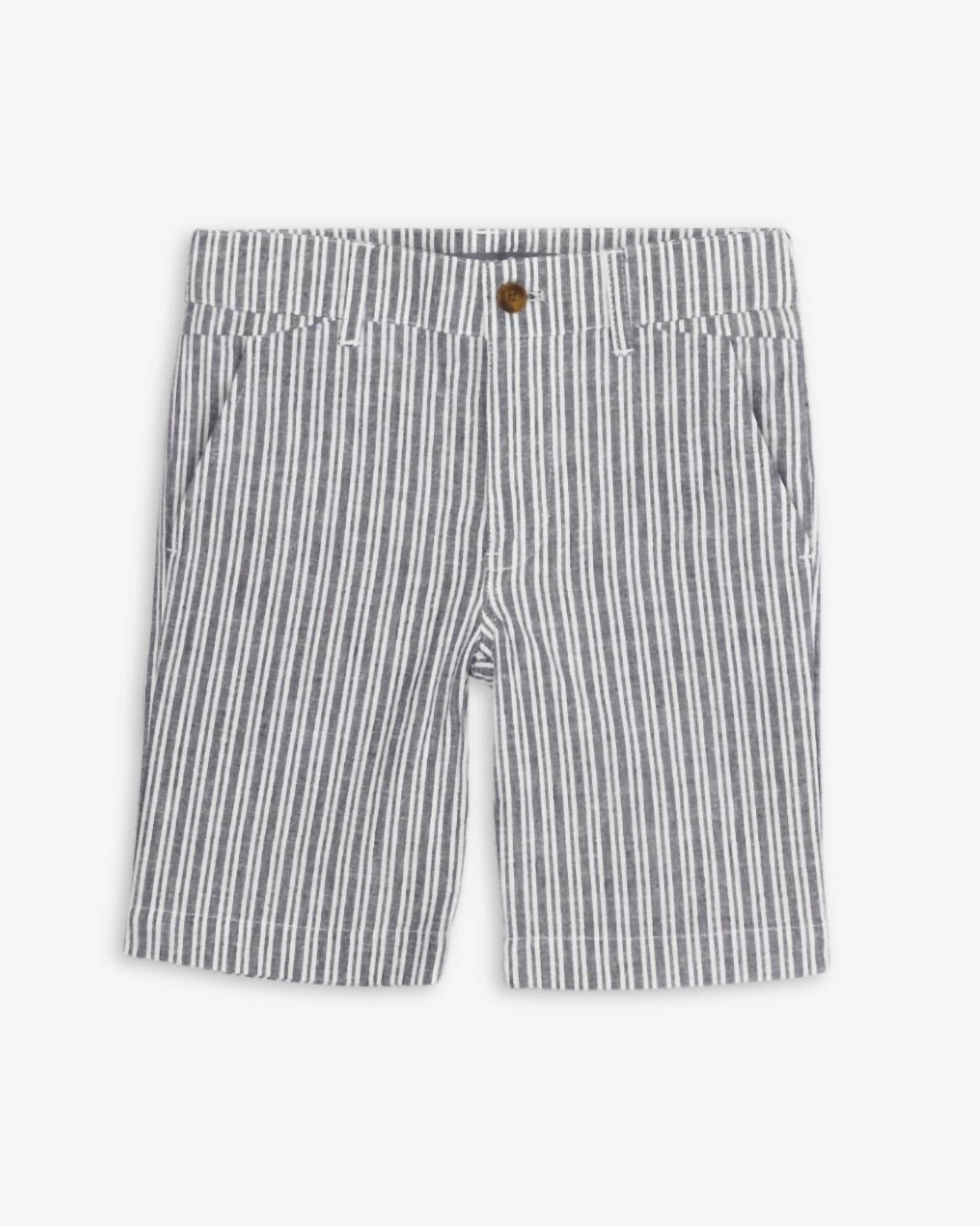 Introducing the Boy's Trouser Short by Appaman, an ideal choice for stylish summer days with its navy stripe design. These shorts are made from a blend of 55% Linen and 45% Rayon, offering breathable comfort for your little adventurer. Crafted as an imported piece, they are perfect for vacations and blend maximalist style with everyday wear. Care for them by dry cleaning and avoid bleaching and tumble drying; steam iron on the reverse side while damp for best results.
