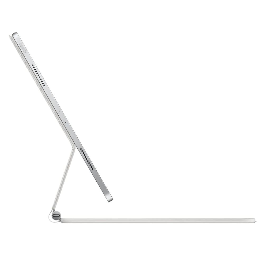 Teclas confortáveis com retroiluminação e mecanismo de tesoura com curso de 1 mm para digitação silenciosa e responsiva. | Projetado para gestos Multi-Touch e o cursor no iPadOS. | O ajuste suave do ângulo proporciona o ângulo de visão perfeito. | Conector USB-C para carregar o iPad Air, liberando o conector do iPad para outros acessórios. | Dobra-se em uma capa para fornecer proteção frontal e traseira para viagens com o iPad Air.