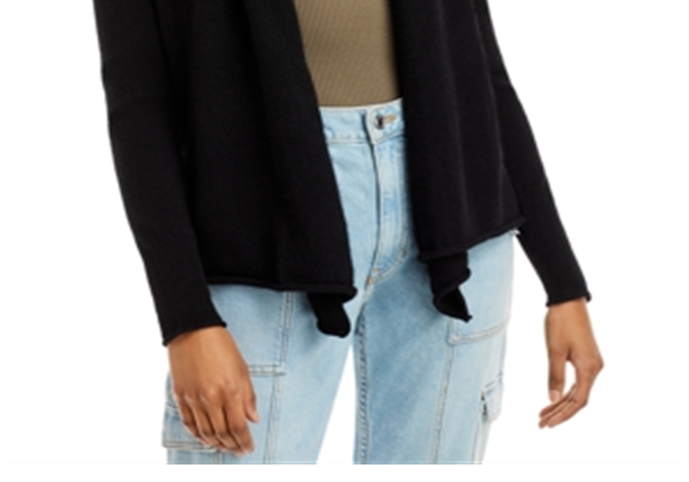 Cardigan de cashmere drapeado com frente aberta, preto, tamanho P