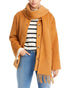 Introducing the Women's Scarf Collar Coat by AQUA, a stylish coat in a textured camel hue. This coat features long sleeves, a round neck with a detachable snap-off scarf with fringe trim, and front patch pockets for added utility. Made from a blend of 64% polyester and 36% wool, with a 100% polyester lining, it offers both warmth and elegance. Closure is secured with front buttons, and care is as simple as dry cleaning.
