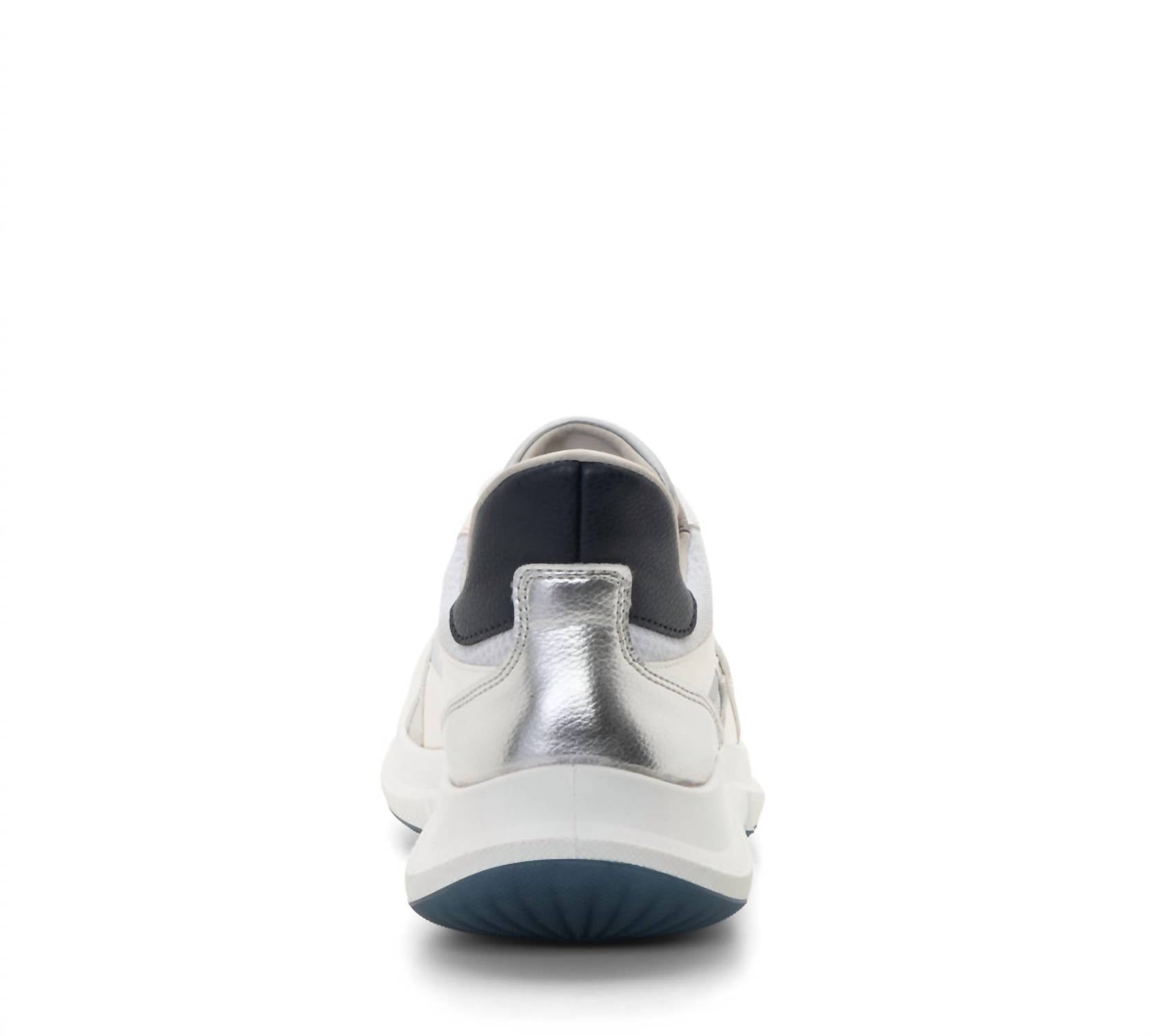 Cute, functional, and comfortable. These sneakers check all the boxes. Step into style with the Women's Mariana Sneaker by Ara, a chic athleisure staple perfect for fitness and workout occasions. Featuring a playful mix of white, silver, and navy in its metallic and mixed-material upper, this sneaker is designed to catch eyes and turn heads. Crafted with a lightweight, flexible, and shock-absorbent wedge outsole, the Mariana Sneaker promises comfort with every step. Embrace the summer season with this trendy round-toe sneaker, expertly blending versatility with a sporty vibe.